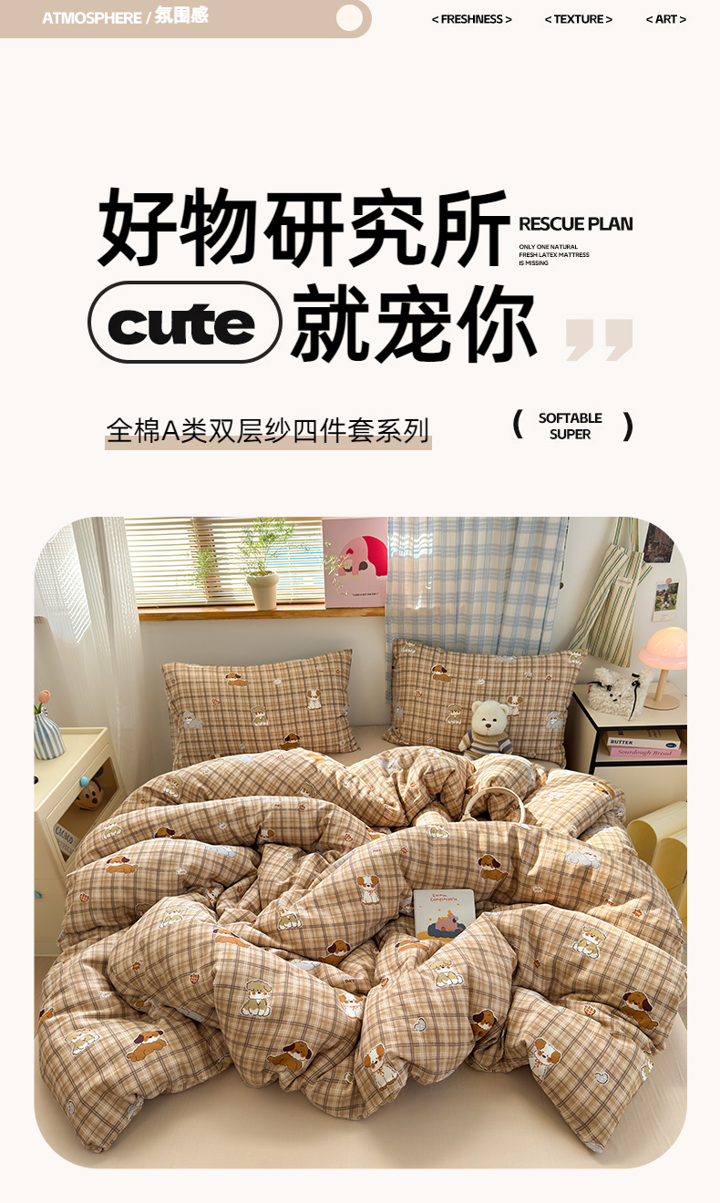 当前位置: 91家纺网 > 商品网购 > 床品套件 > 四件套 > 全棉普通四件套 > 曼之夏 2025新款全棉纯棉双层印花四件套 哈哈狗