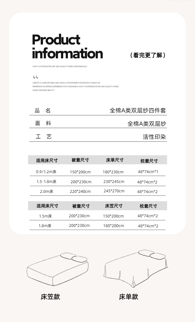 【床笠款】1.8四件套-被套200x230 | ¥130.00 |
