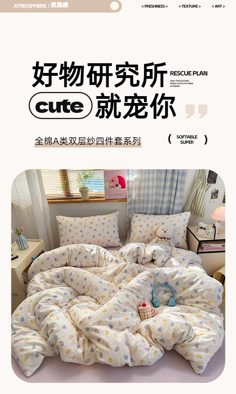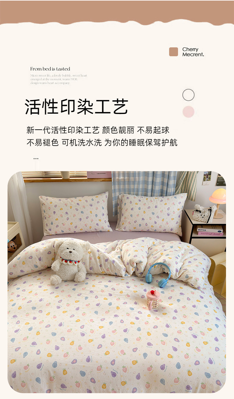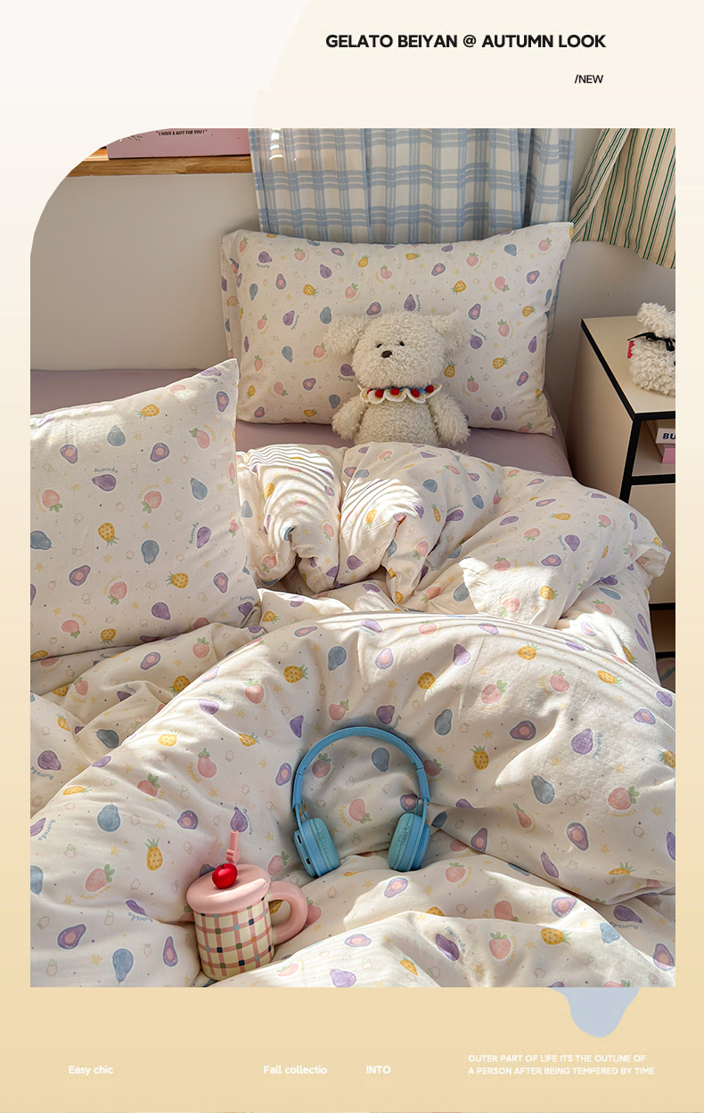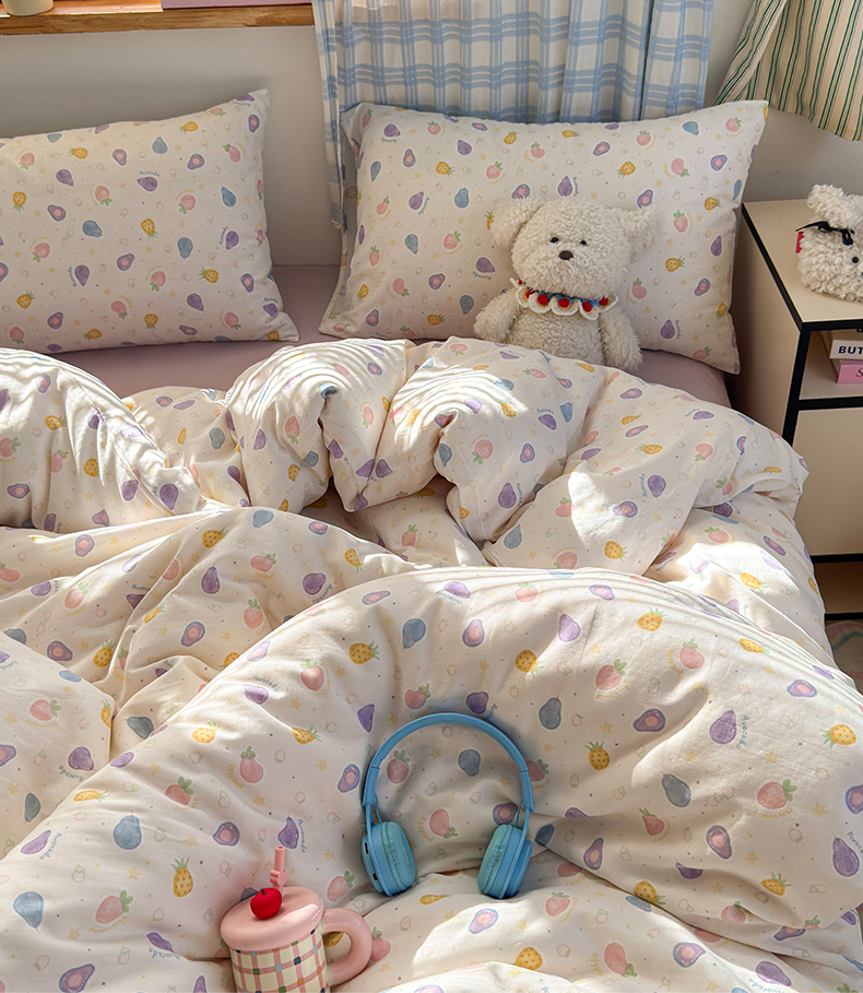 当前位置: 91家纺网 > 商品网购 > 床品套件 > 四件套 > 全棉普通四件套 > 曼之夏 2025新款全棉纯棉双层印花四件套 水果派对