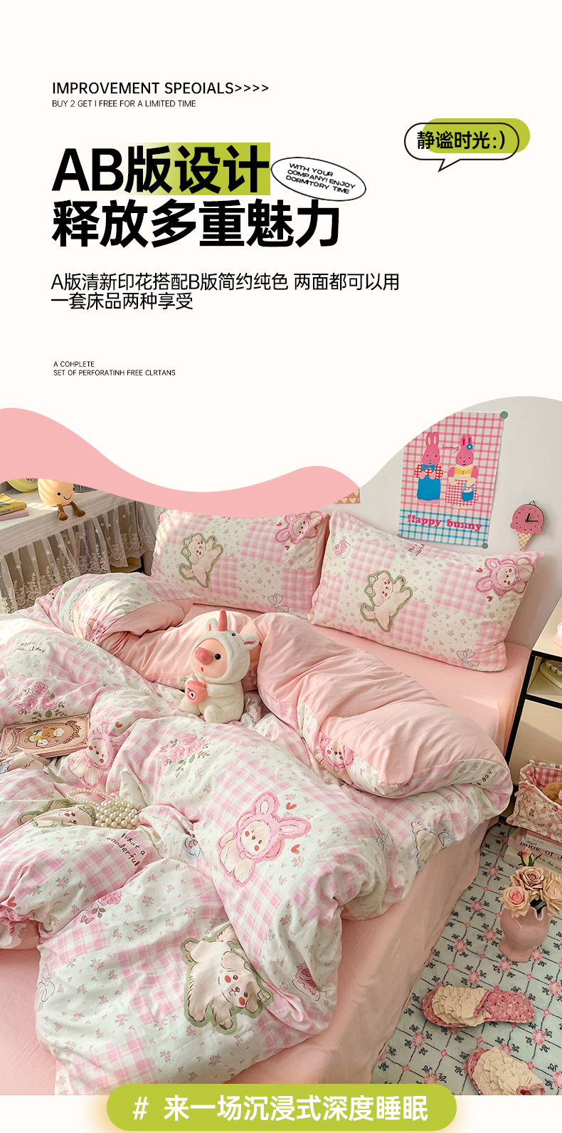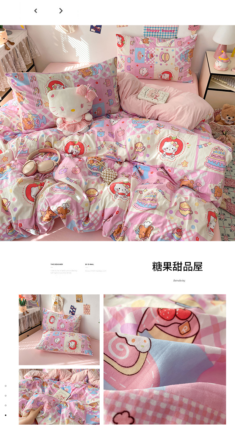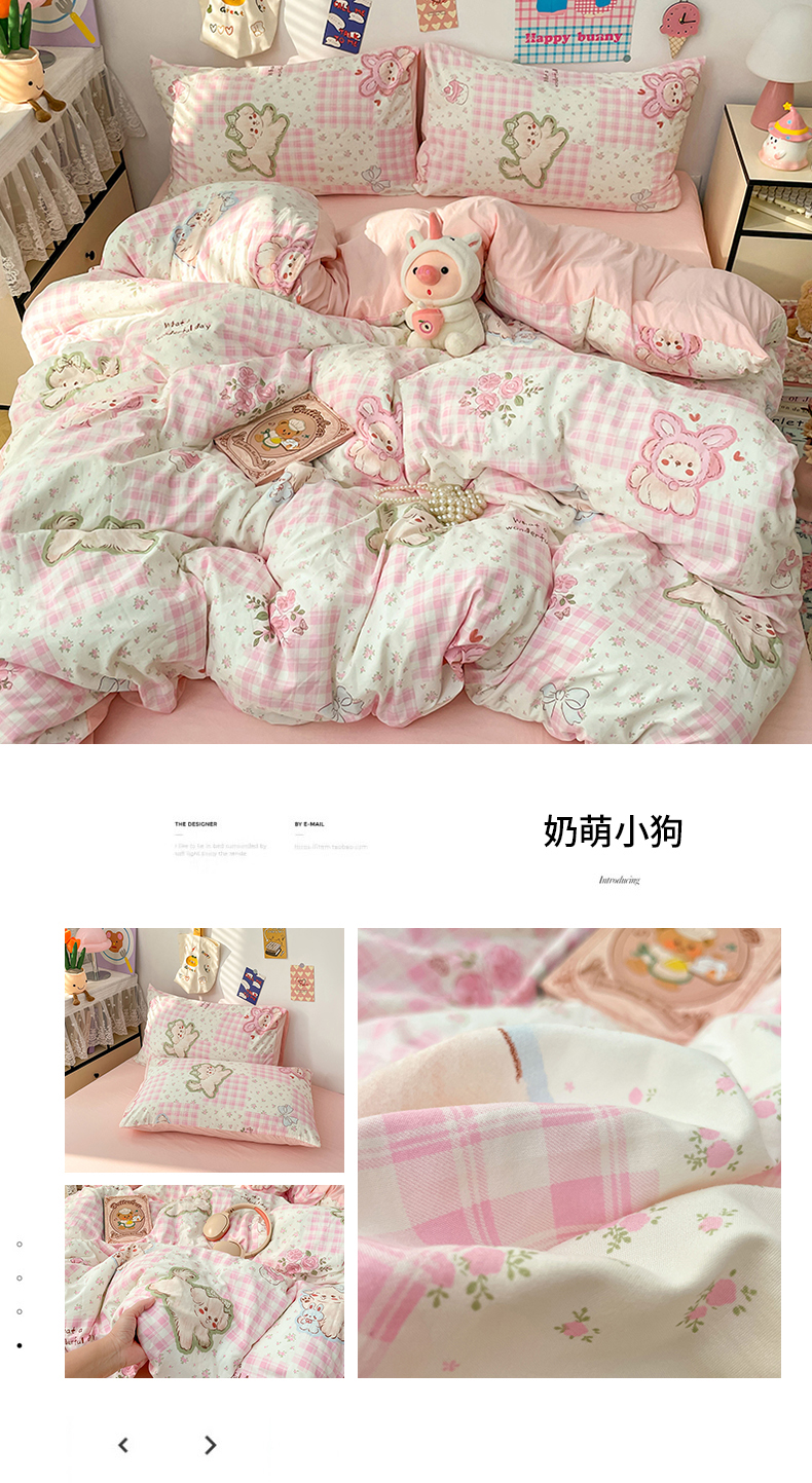 当前位置: 91家纺网 > 商品网购 > 床品套件 > 四件套 > 水洗棉四件套 > 梦卓家纺 2025新款超柔水洗棉印花双层纱卡通小清新四件套 格子樱桃