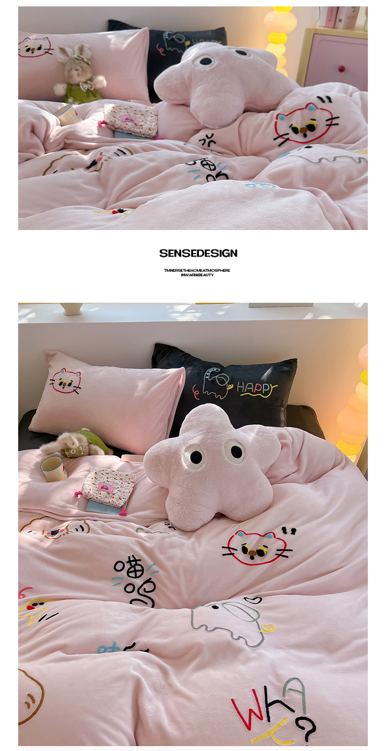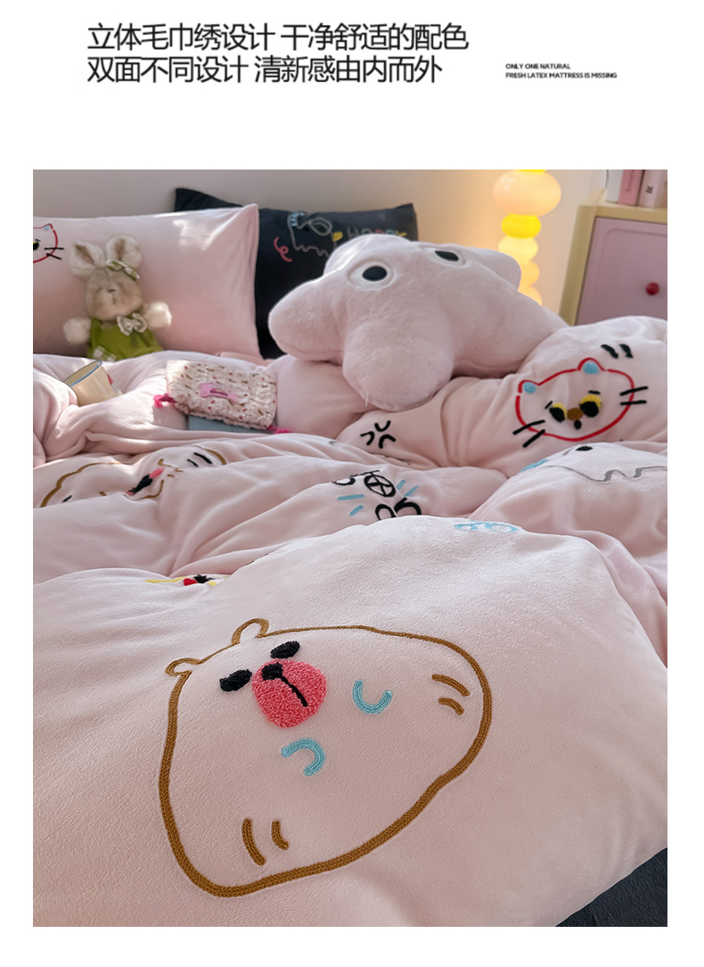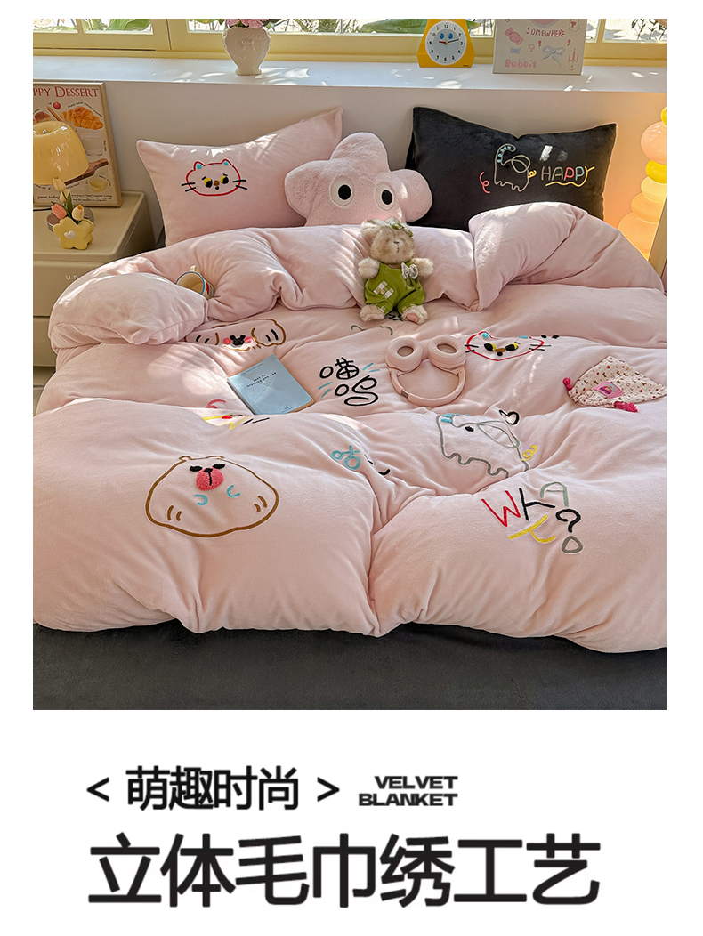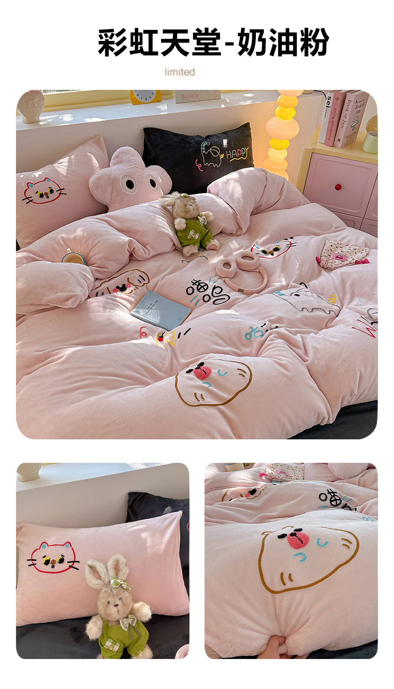 当前位置: 91家纺网 > 商品网购 > 床品套件 > 四件套 > 牛奶绒四件套 > 子钦家纺 2025新款加厚牛奶绒INS风撞色毛巾绣四件套-彩虹天堂 彩虹天堂-奶油粉