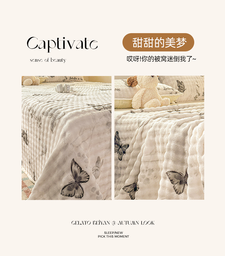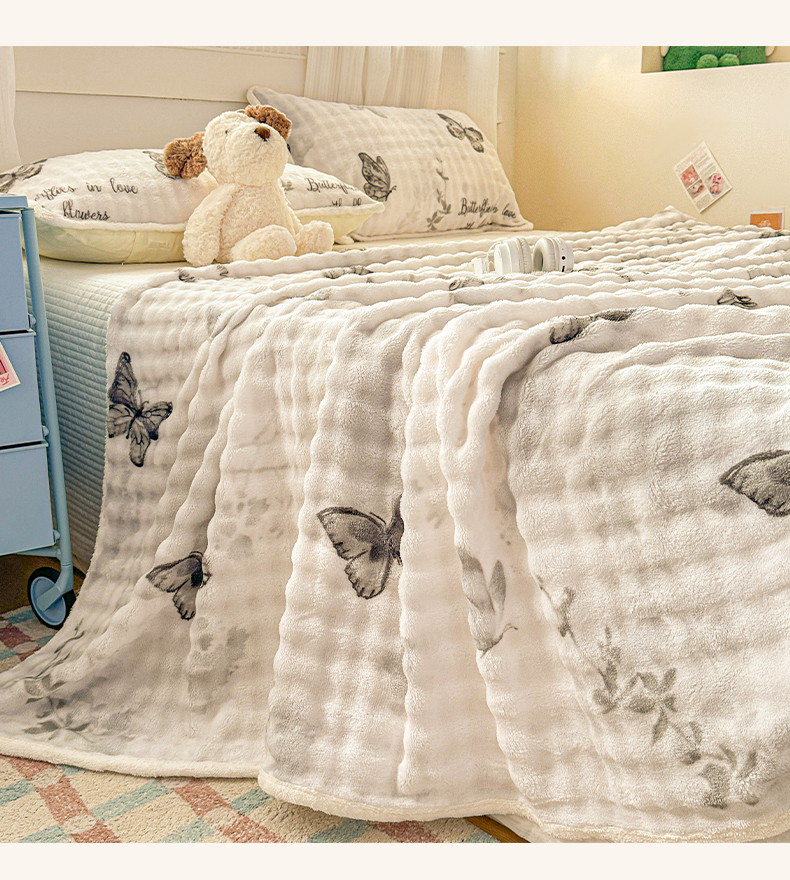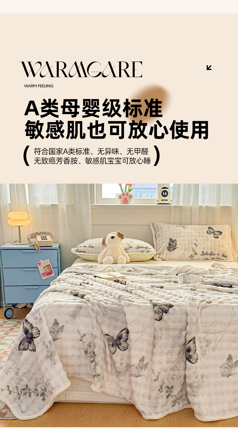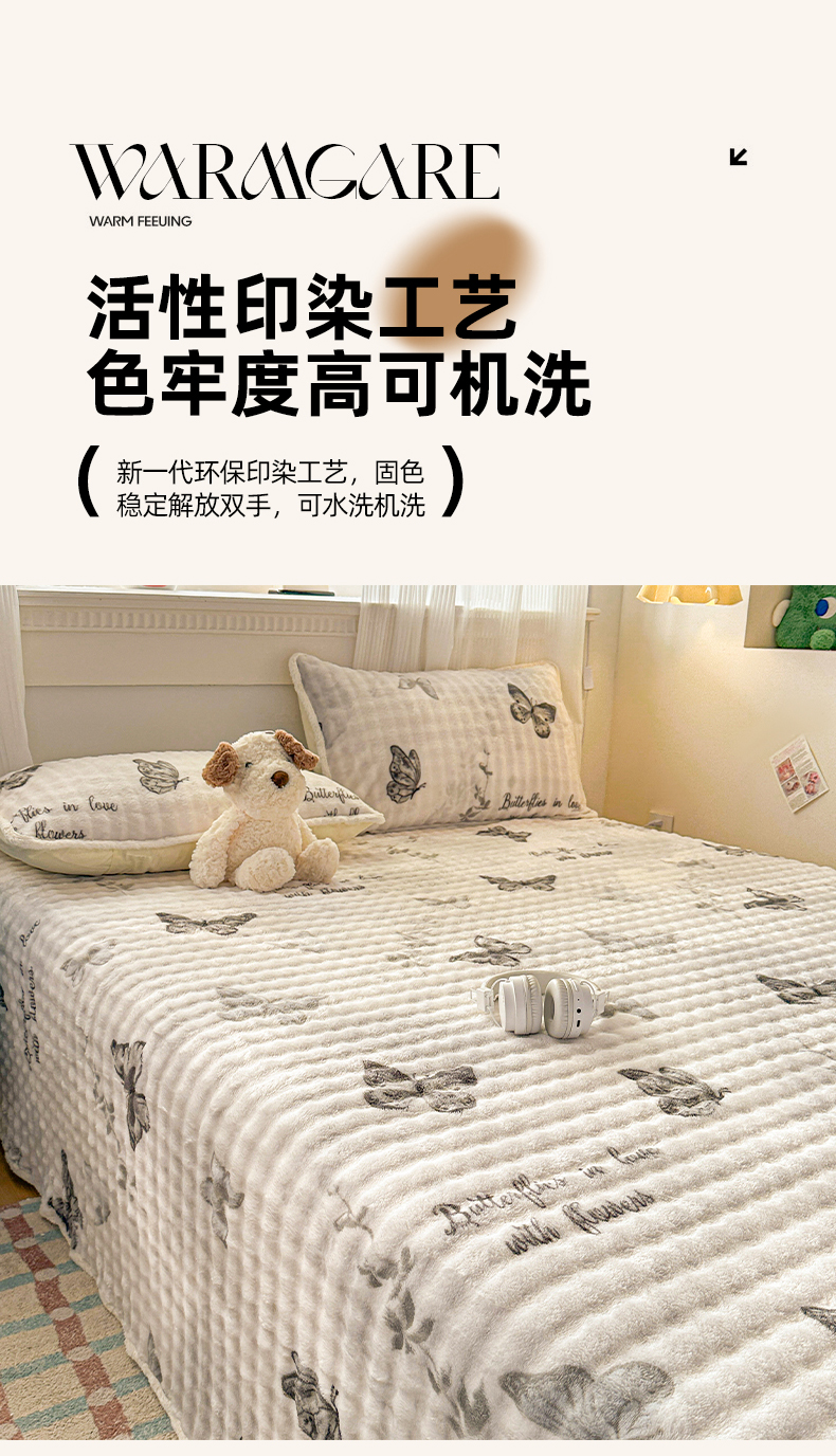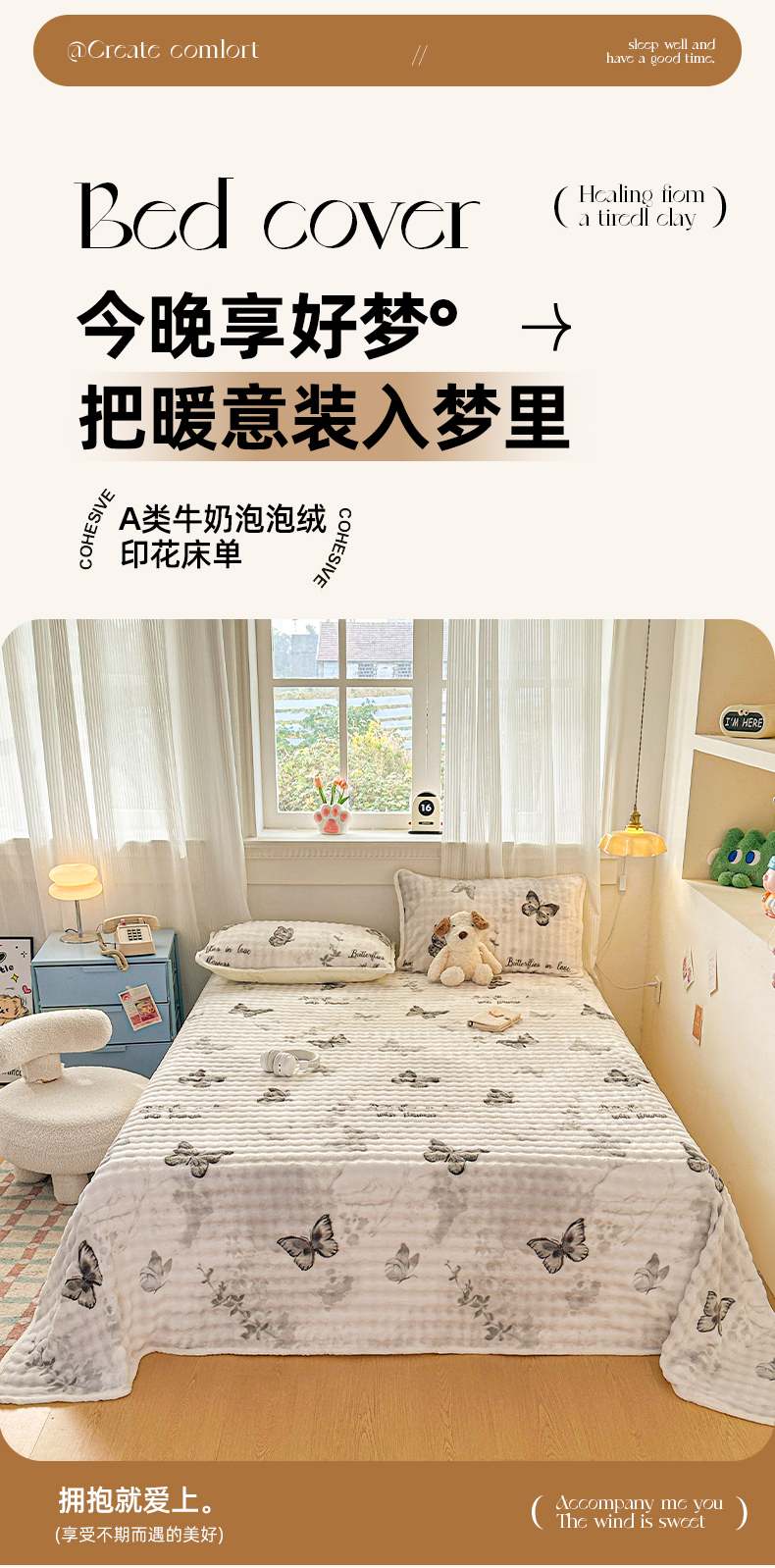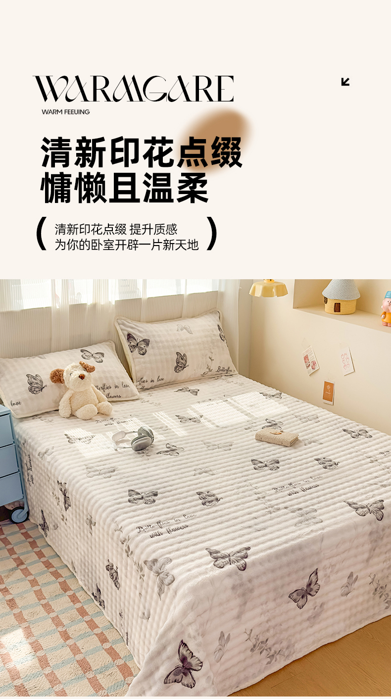 • 91家纺网 家纺一手货源 找家纺 丝芙妮家居(原乐视家纺) 2025新款A类牛奶泡泡绒印花单品床单 轻舞梦蝶