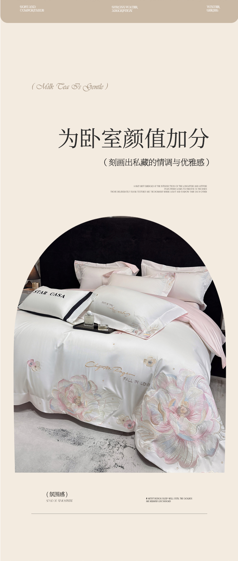 (总)星蕴家纺 2024新款A类13376新疆全棉刺绣四件套,高级灰,奶昔白,千禧粉,浅香槟