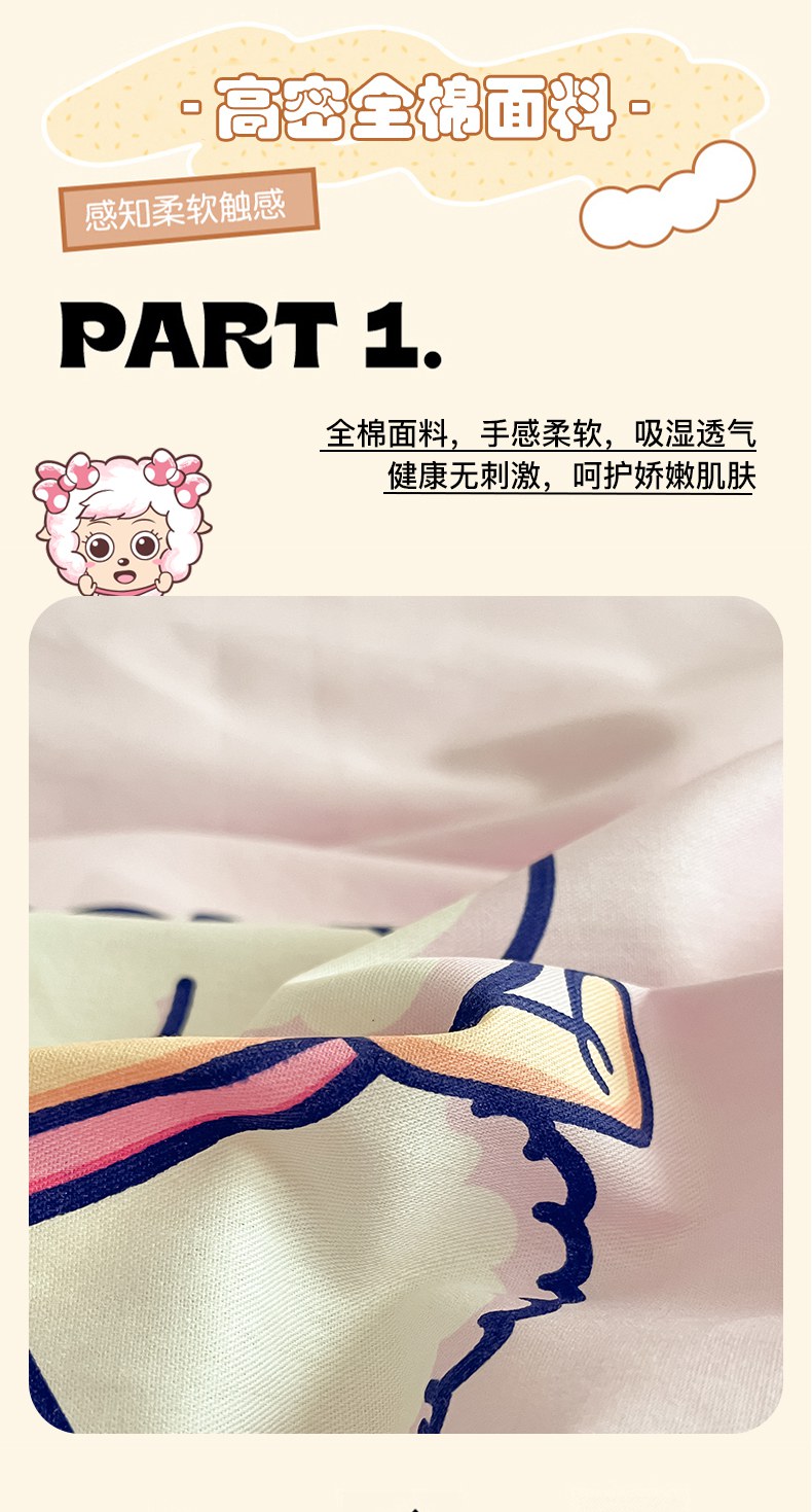 商品名称:金鑫汇家纺 2025新款喜羊羊与灰太狼全棉单品床笠 乖巧美羊羊