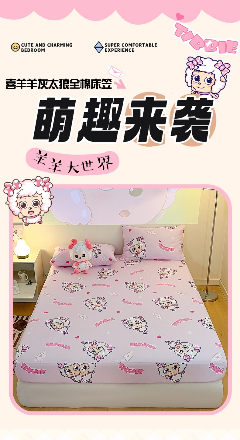 金鑫汇家纺 2025新款喜羊羊与灰太狼全棉单品床笠 乖巧美羊羊