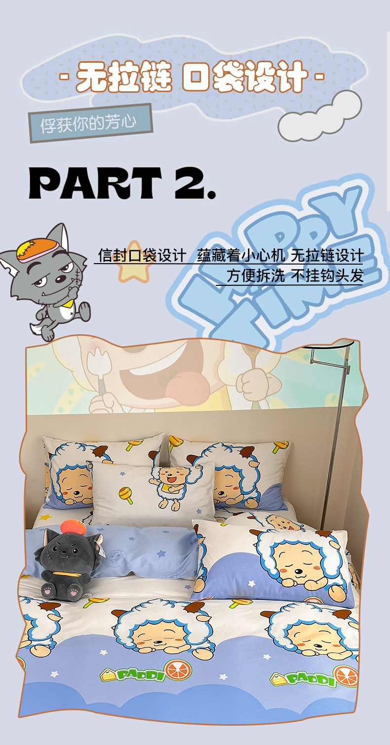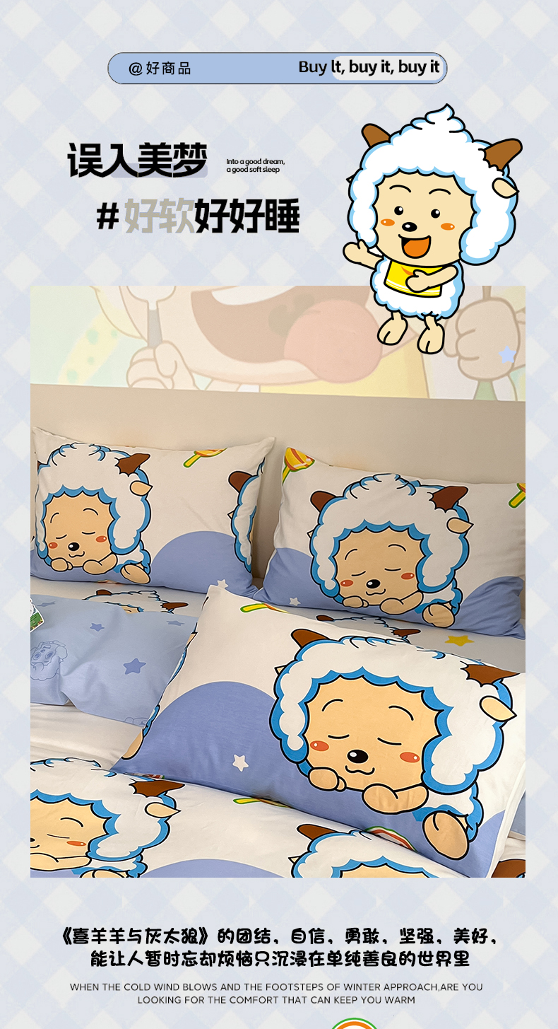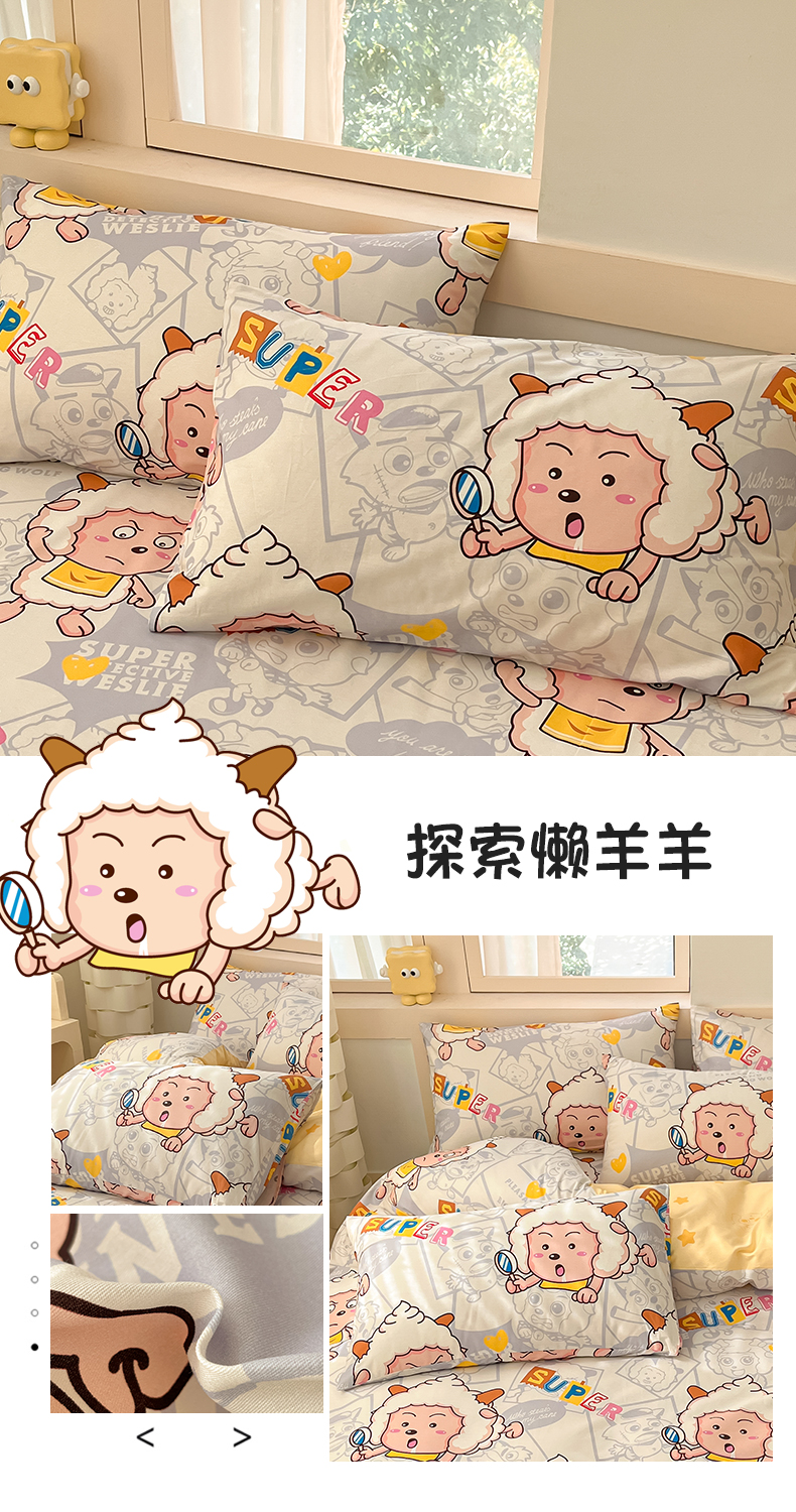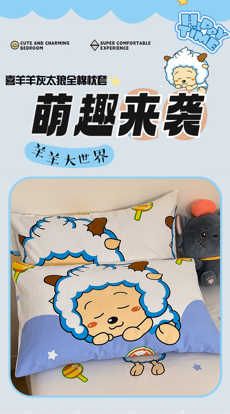 商品名称:金鑫汇家纺 2025新款喜羊羊与灰太狼全棉单品枕套 懒懒大王