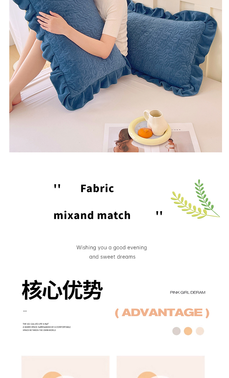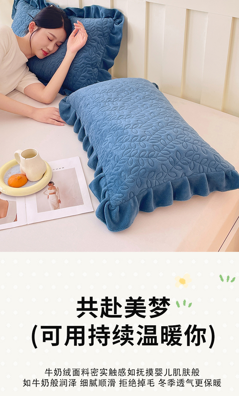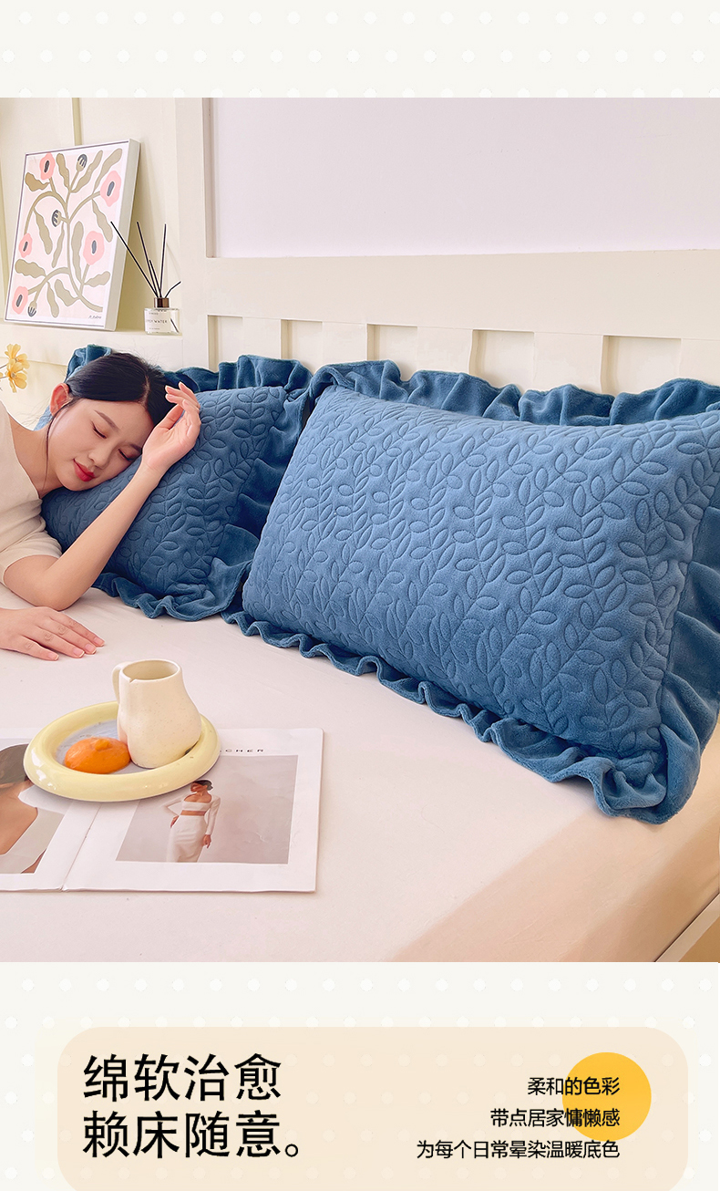 商品名称:芯宜佳 2025新款加厚牛奶绒夹棉花边短枕套 幸运草-雾兰
