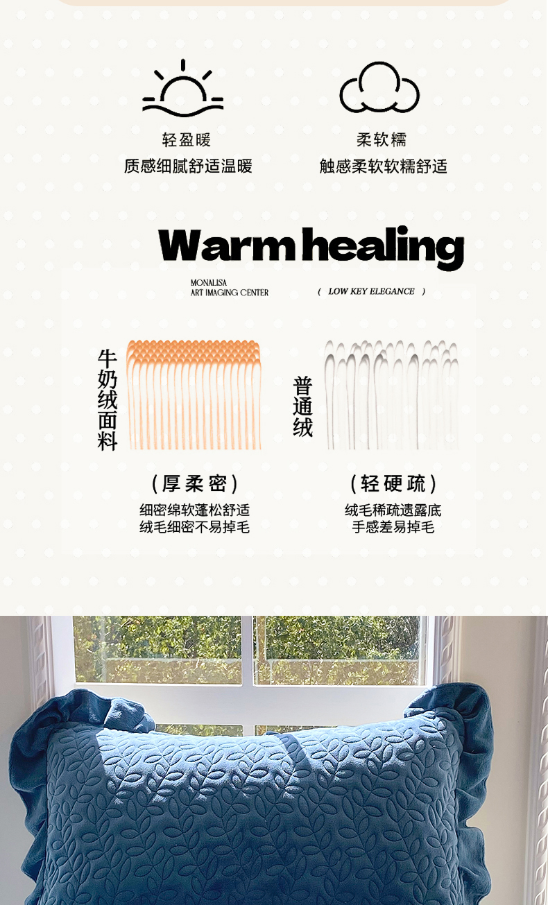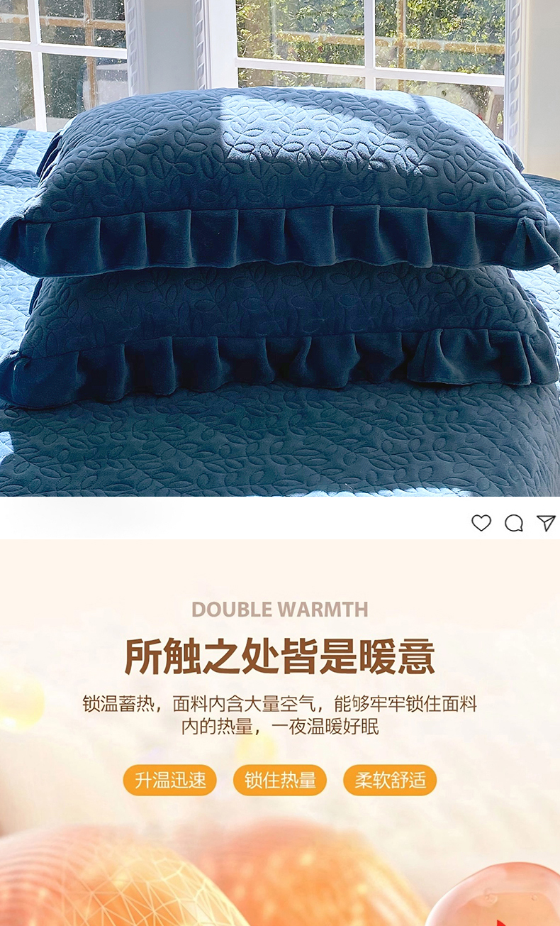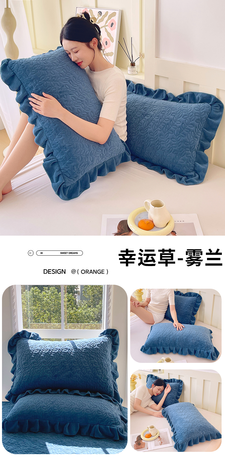 商品名称:芯宜佳 2025新款加厚牛奶绒夹棉花边短枕套 幸运草-雾兰