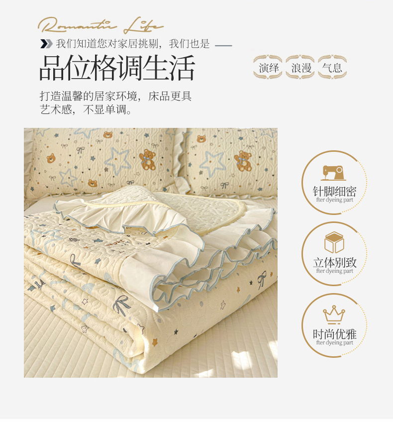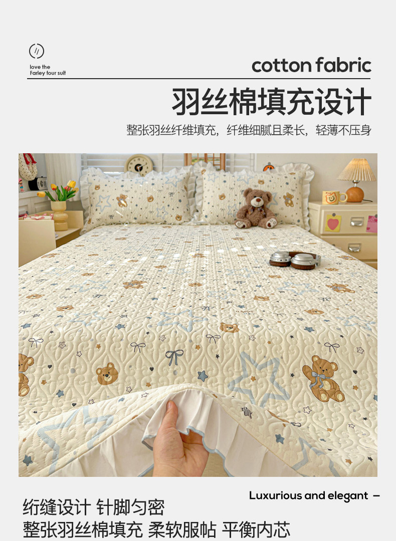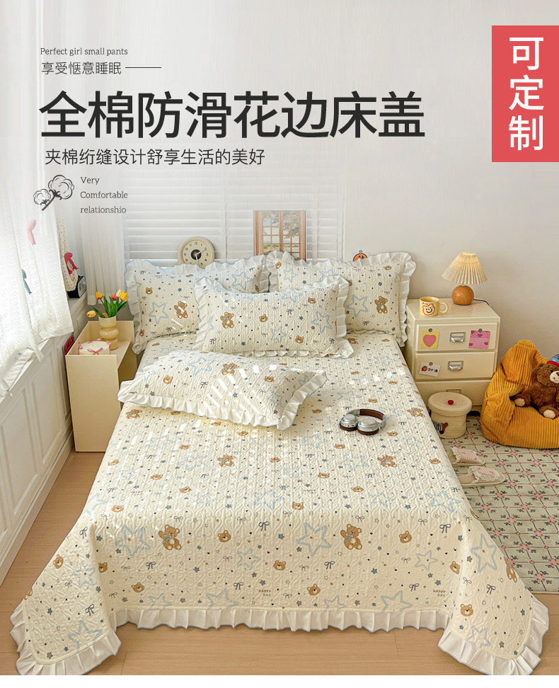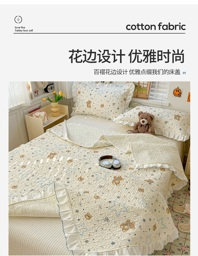 羽爱家纺 2025新款全棉防滑花边床盖星星熊
