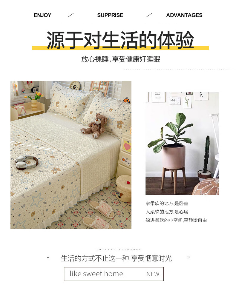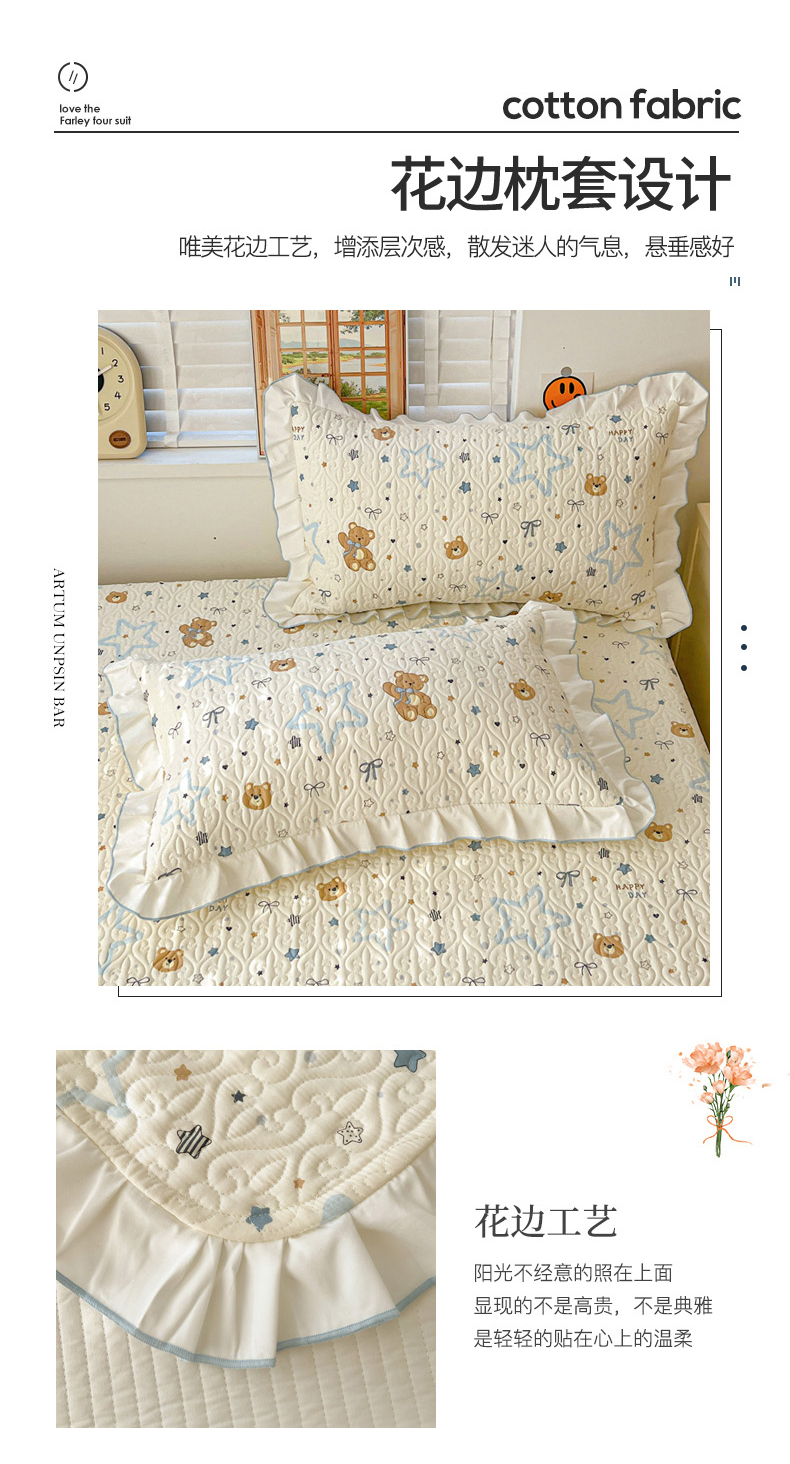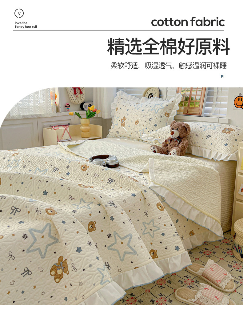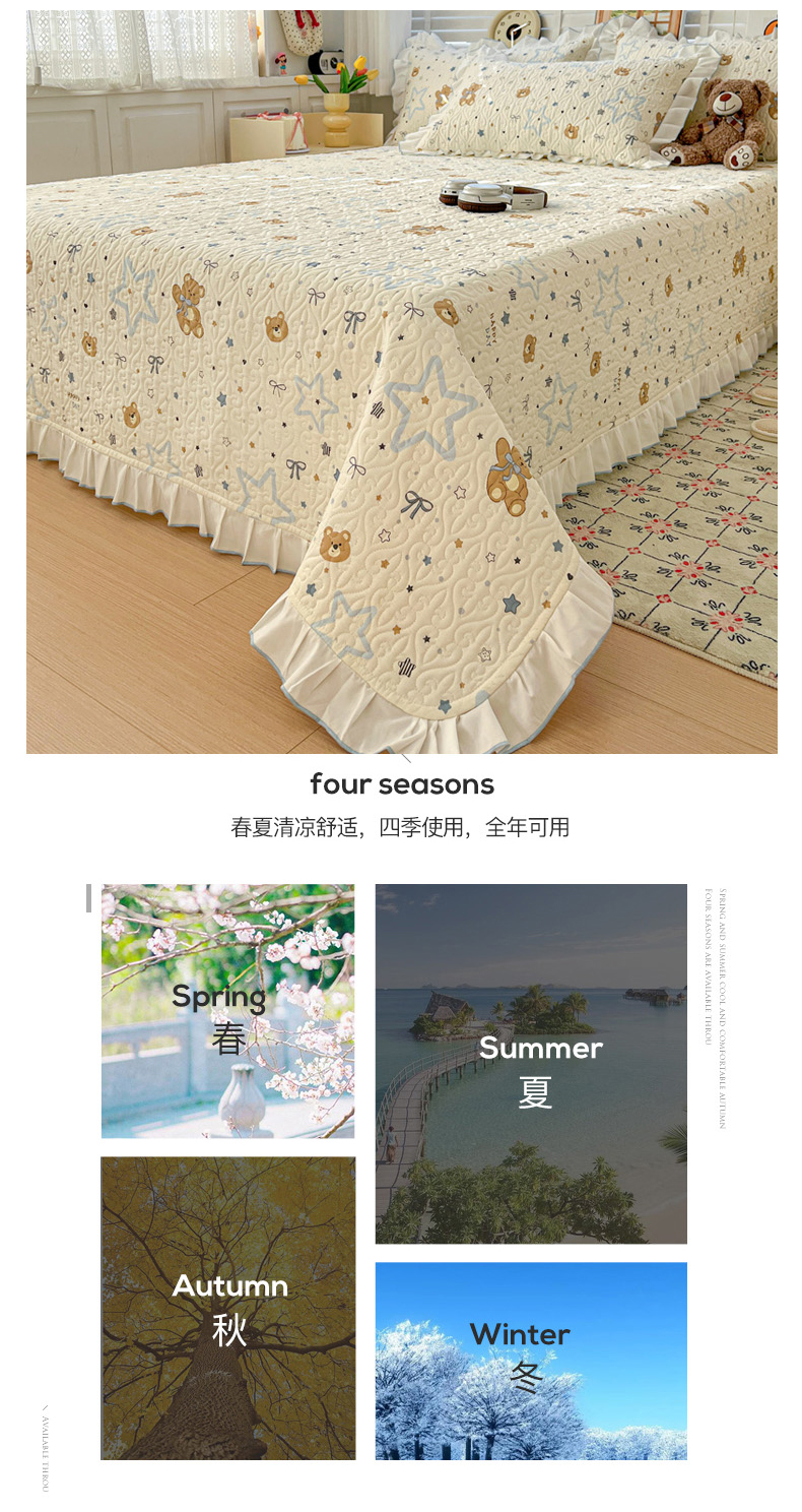 羽爱家纺 2025新款全棉防滑花边床盖星星熊