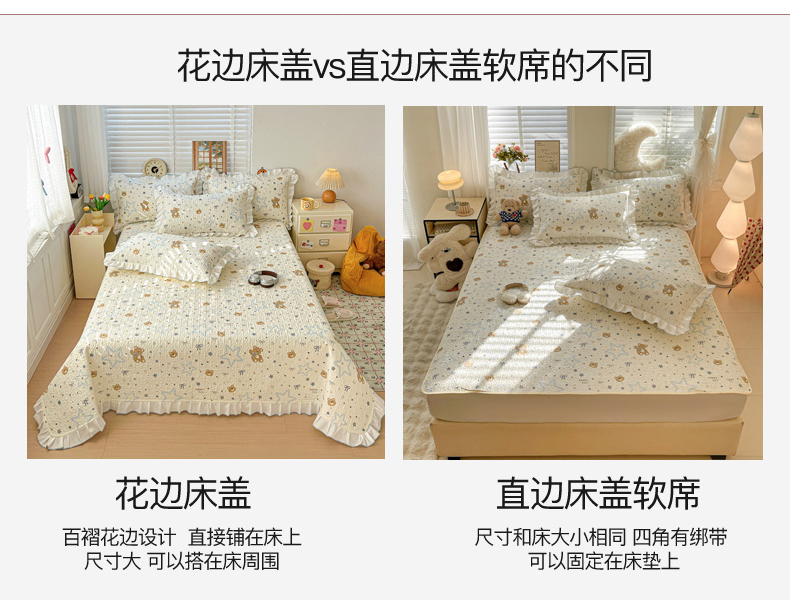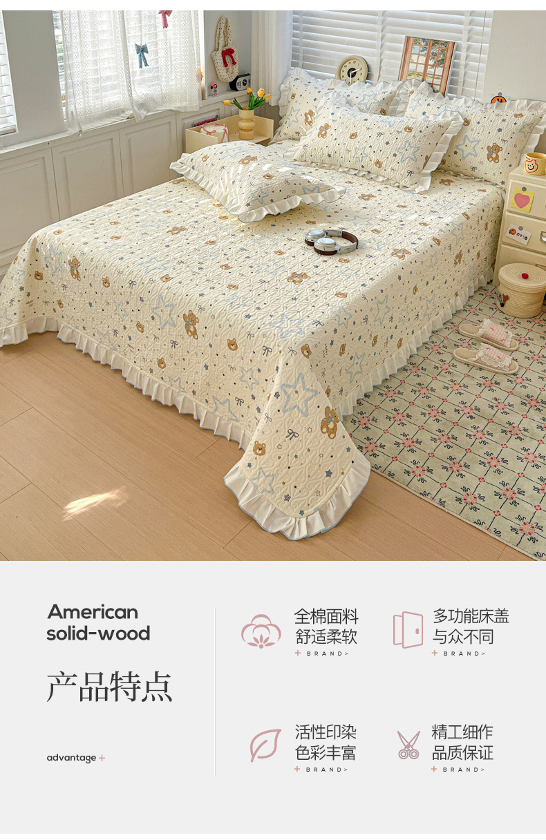 商品名称:羽爱家纺 2025新款全棉防滑花边床盖星星熊