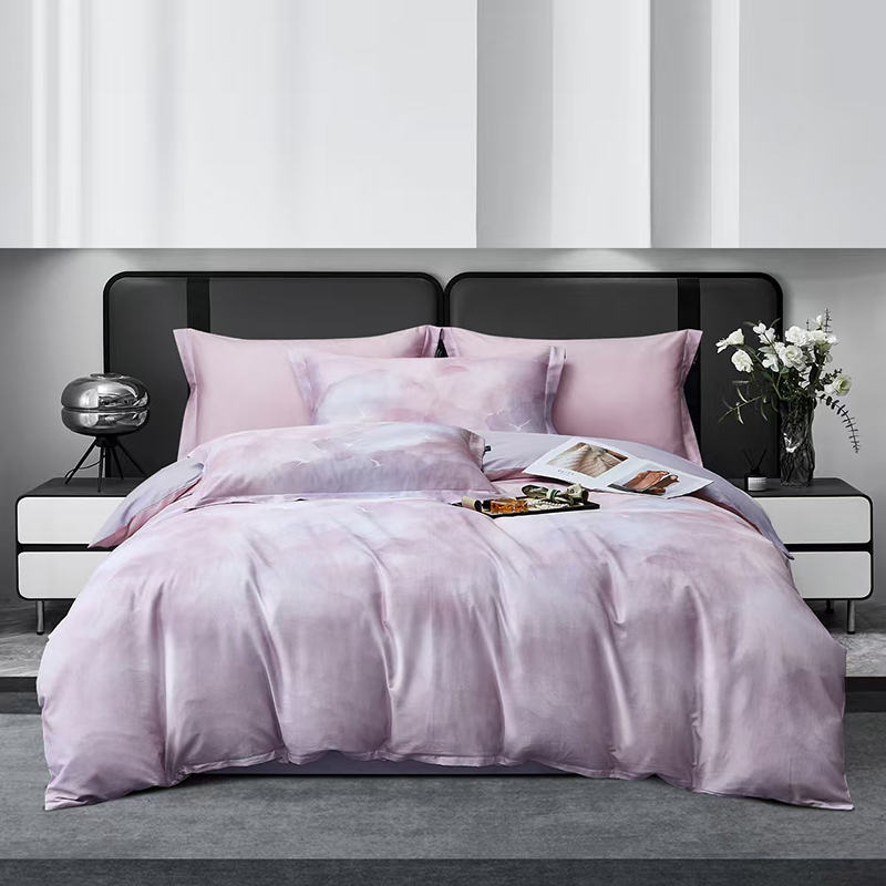 玖玖爱家纺 2025新款长绒棉全棉数码印花四件套 半岛茶花紫