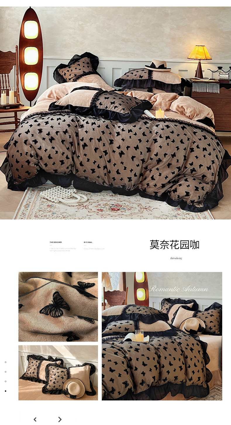 当前位置: 91家纺网 > 商品网购 > 床品套件 > 四件套 > 牛奶绒四件套 > 韩秀家纺 2025新款法式加厚牛奶绒莫奈花园床裙四件套 莫奈花园-咖