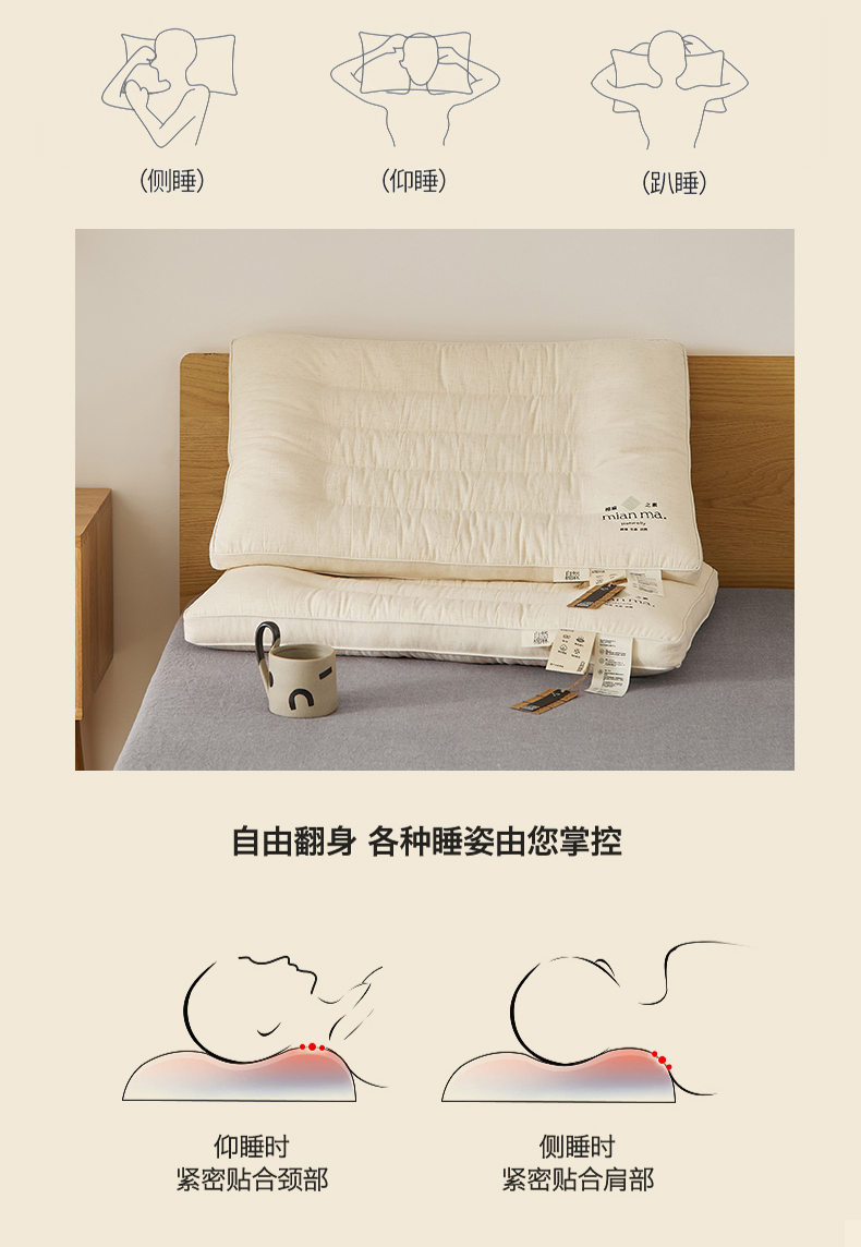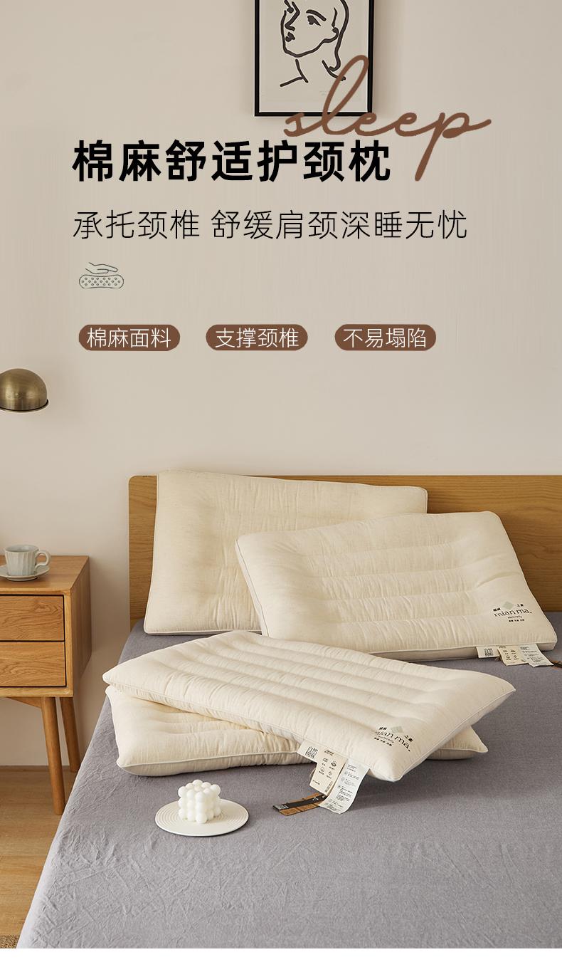 当前位置: 91家纺网 > 商品网购 > 枕头/枕芯/保健枕/颈椎枕 > 枕头枕芯 > 境月枕芯坊 2025新款棉麻舒适护颈枕枕头枕芯 棉麻舒适护颈枕-低软款