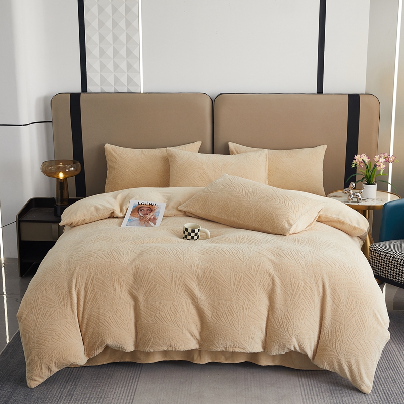卡诗兰 2025款高克重纯色牛奶绒雕花四件套 驼色