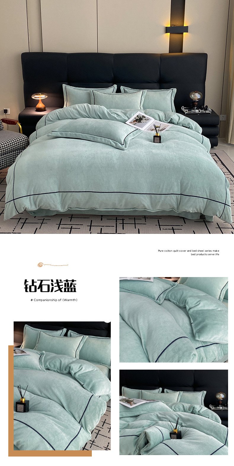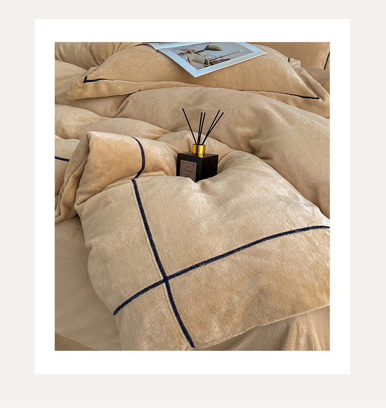 商品名称:卡诗兰2025款高克重加厚牛奶绒十字绣四件套 钻石奶咖
