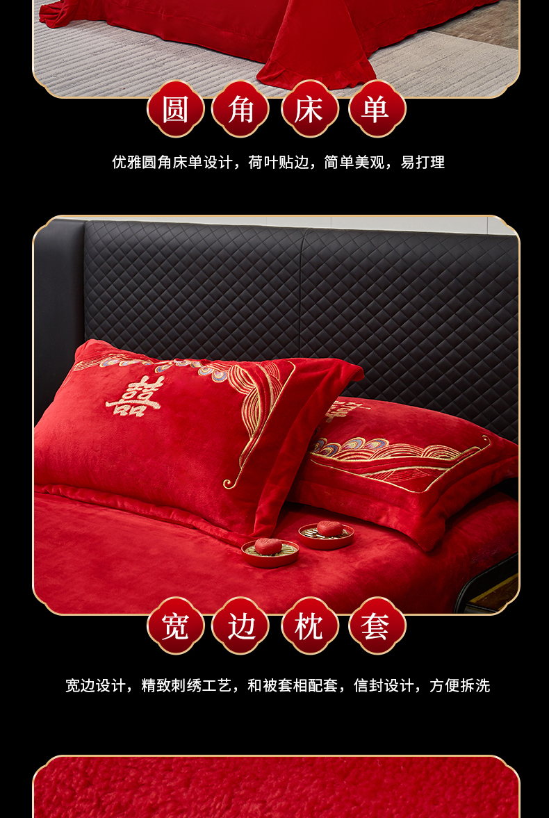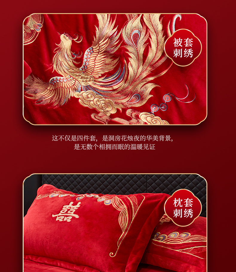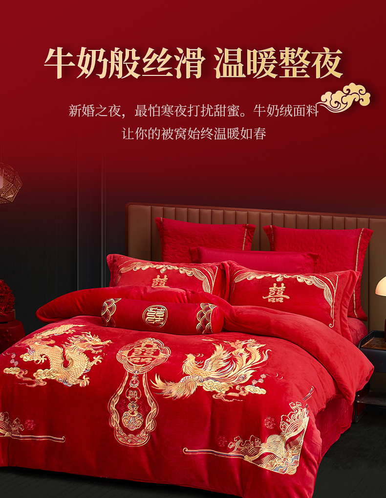 浩情国际婚庆供货中心 2026新品婚庆加厚全消光牛奶绒四件套系列 吉祥龙凤