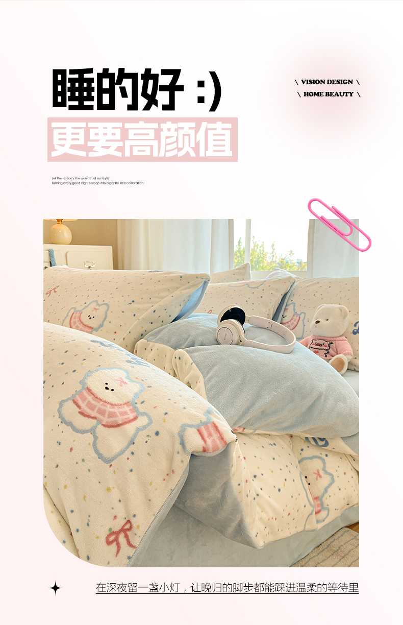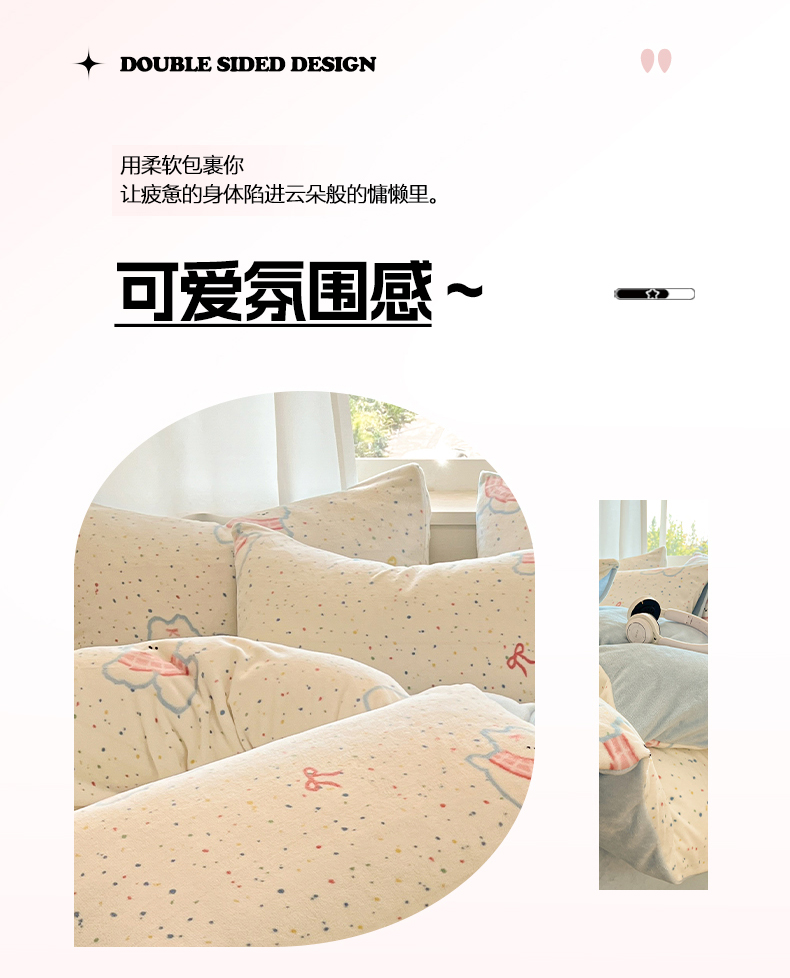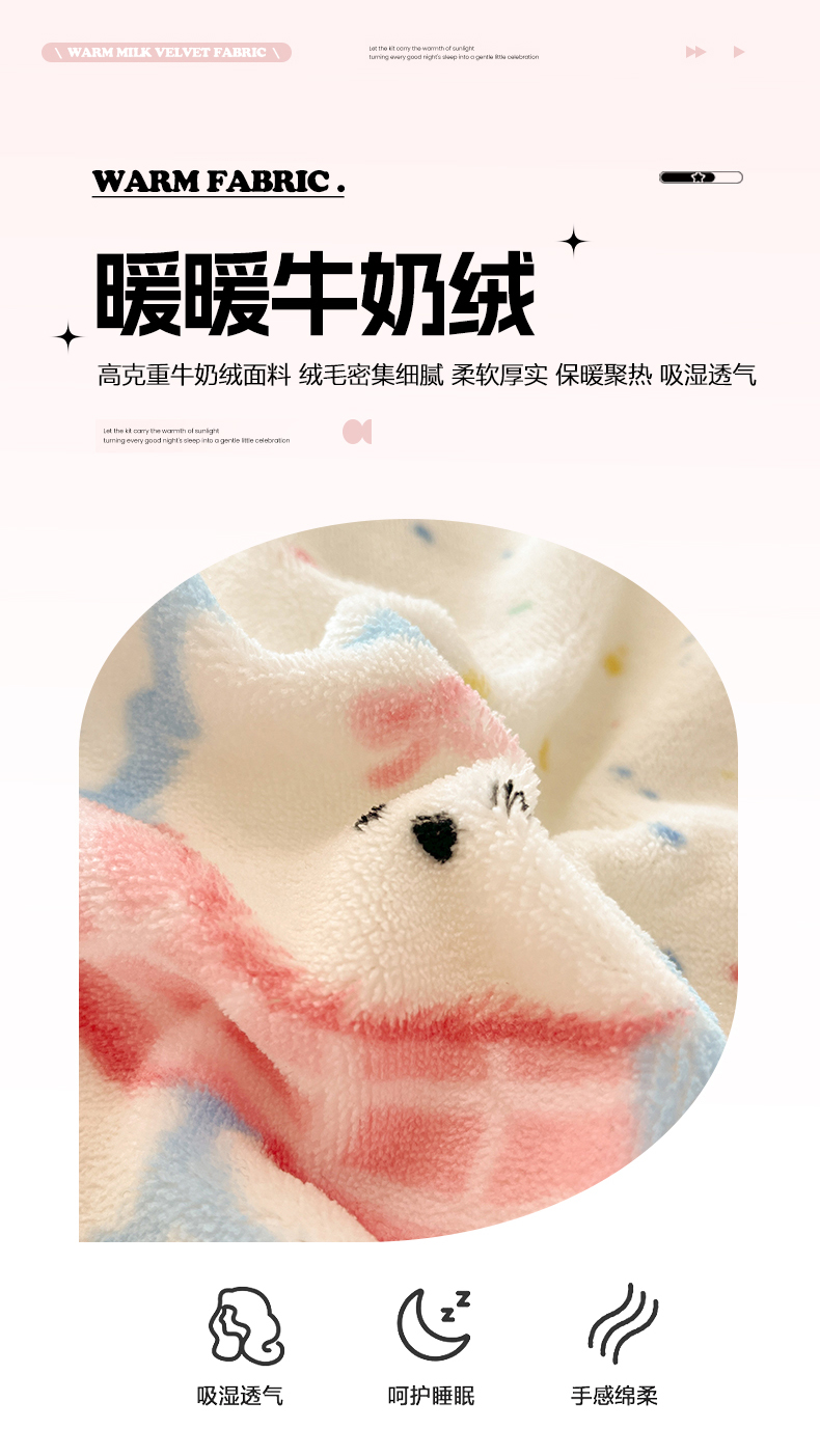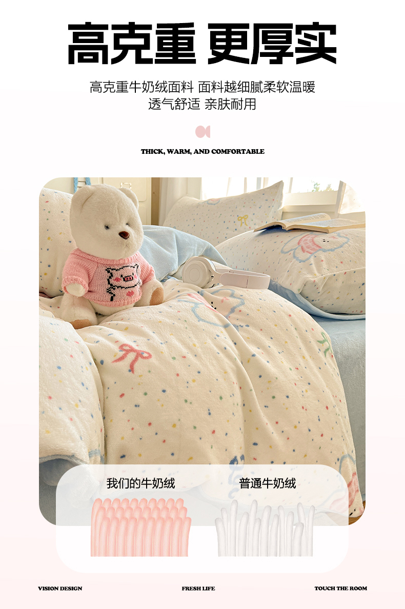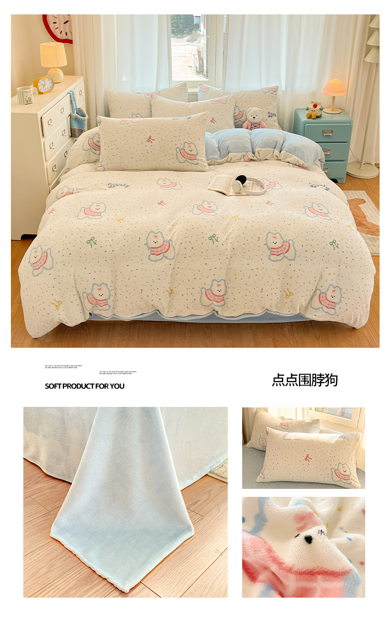吉象家纺 2025新款高克重牛奶绒印花被套 点点围脖狗