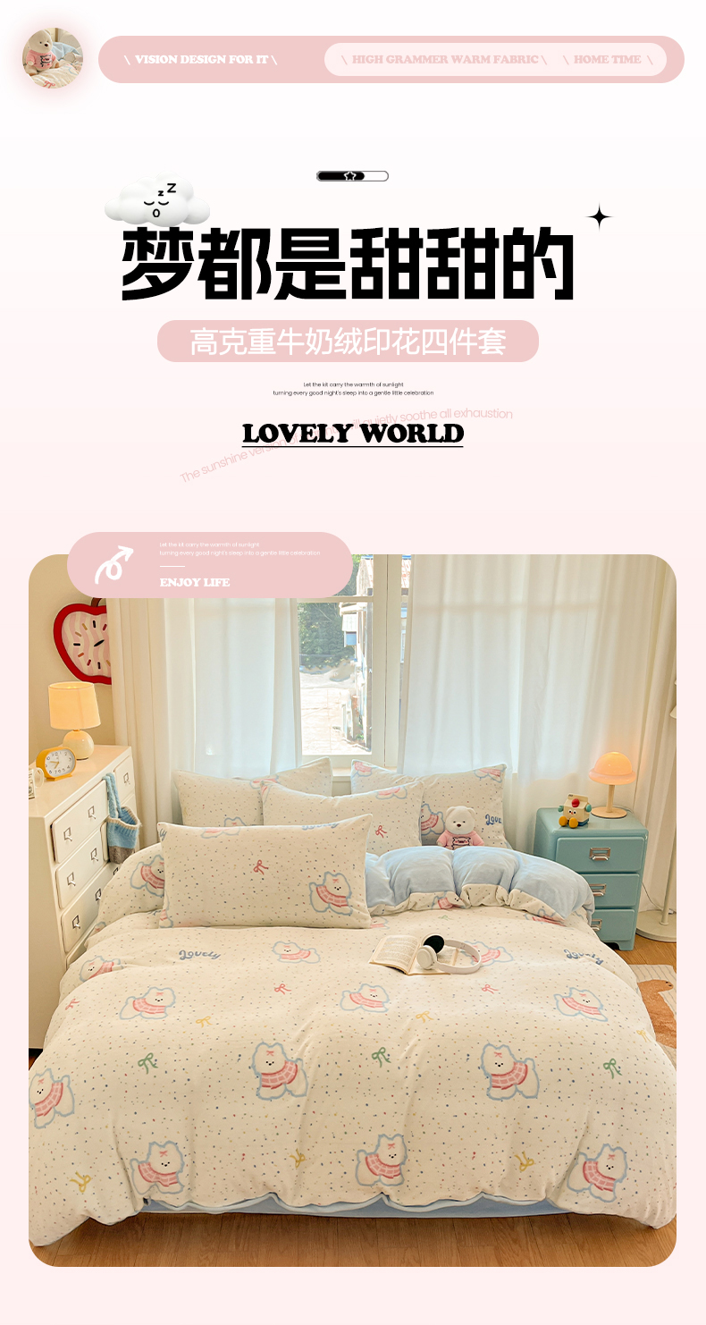(总)吉象家纺 2025新款全棉牛奶绒印花四件套,棉绒-格子熊,棉绒-狗狗派对,棉绒-花丛小狗,棉绒-镜子海洋,棉绒-蓝色泡芙狗,棉绒-蜜罐猫猫,棉绒-蘑菇小兔,棉绒-奶油甜心熊,棉绒-苹果狗,棉绒-俏皮狗狗,棉绒-碎花狗狗,棉绒-碎花小兔,棉绒-糖纸童年,棉绒-甜心喵喵,棉绒-童趣萌新,棉绒-洋气泰迪,棉绒-爪爪会客厅