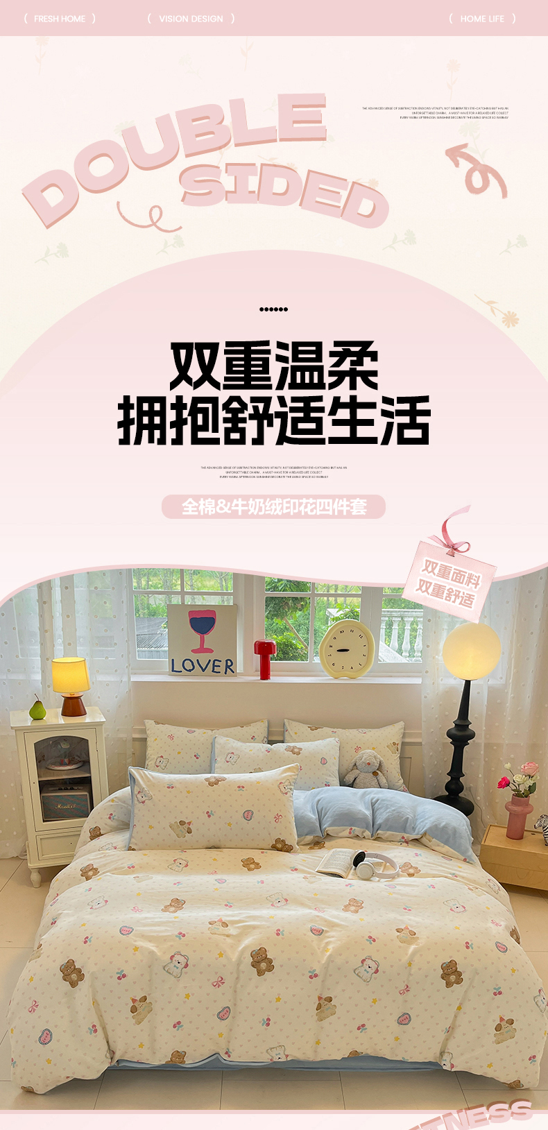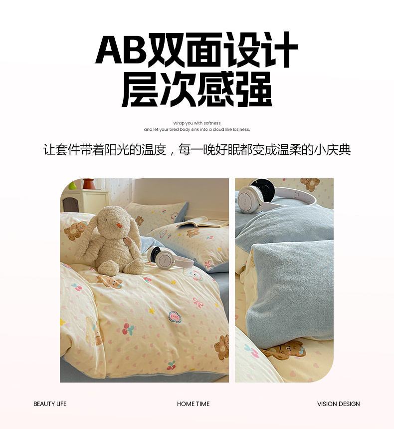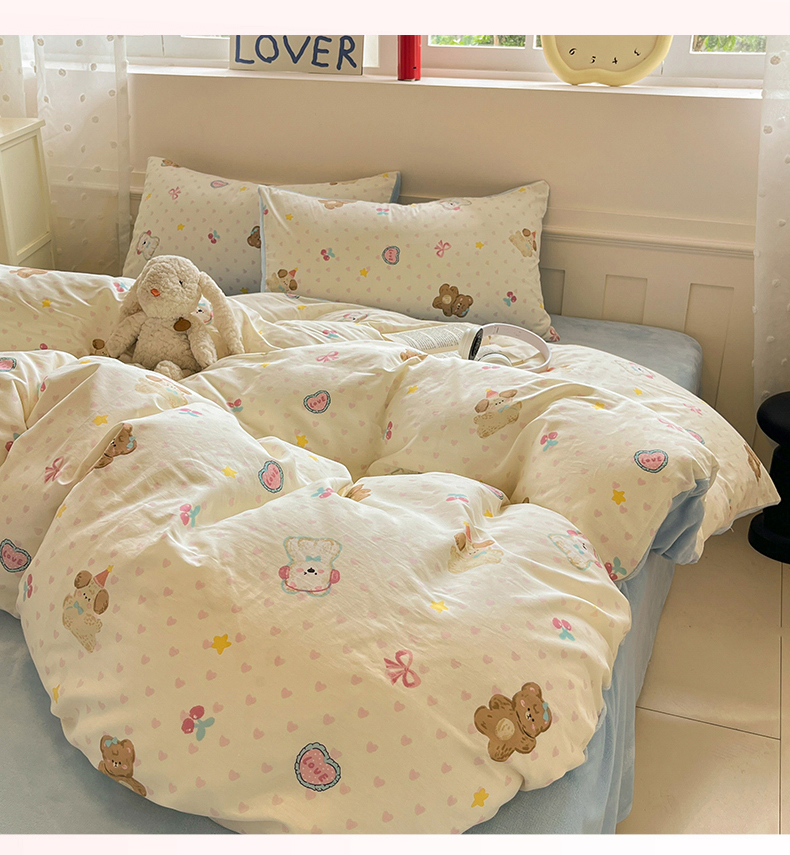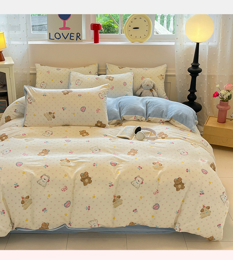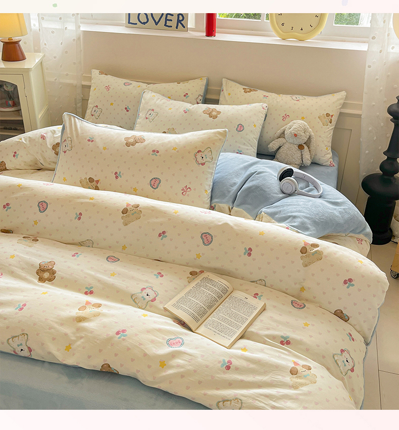 吉象家纺 2025新款全棉牛奶绒印花四件套 棉绒-奶油甜心熊