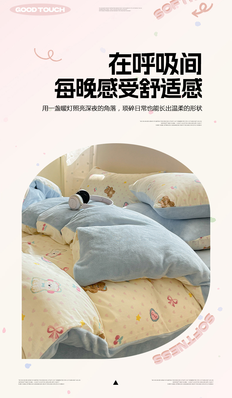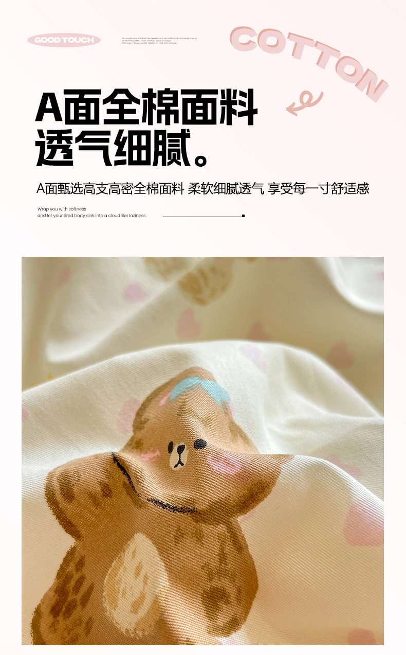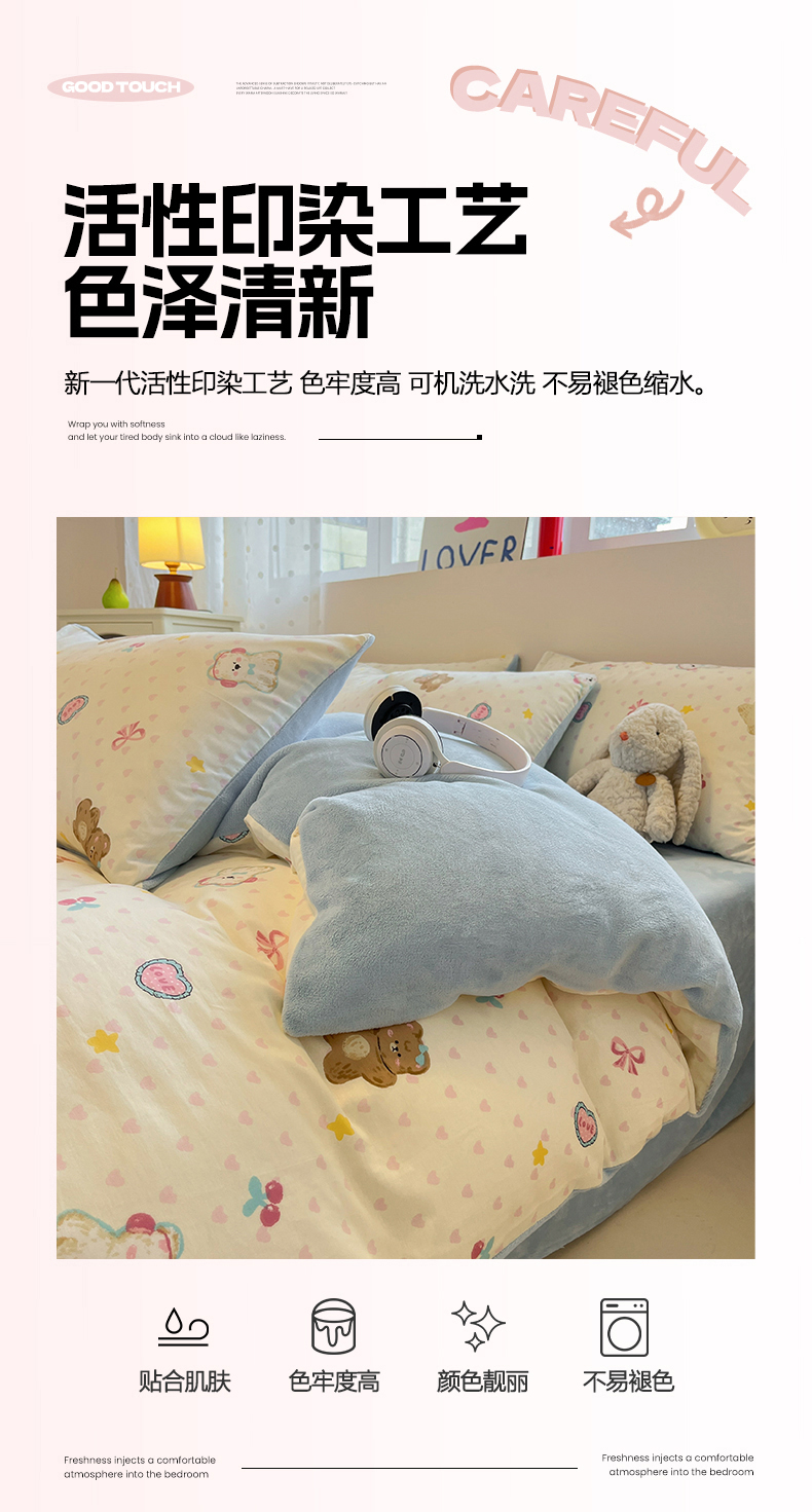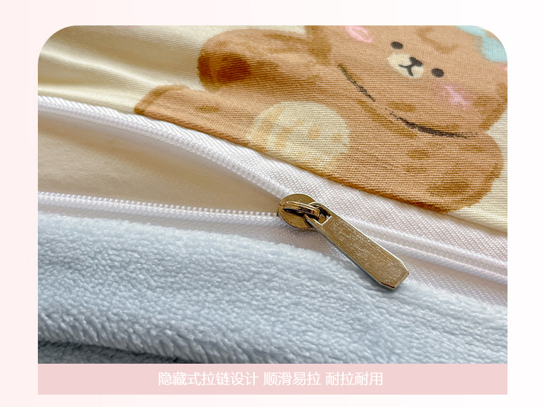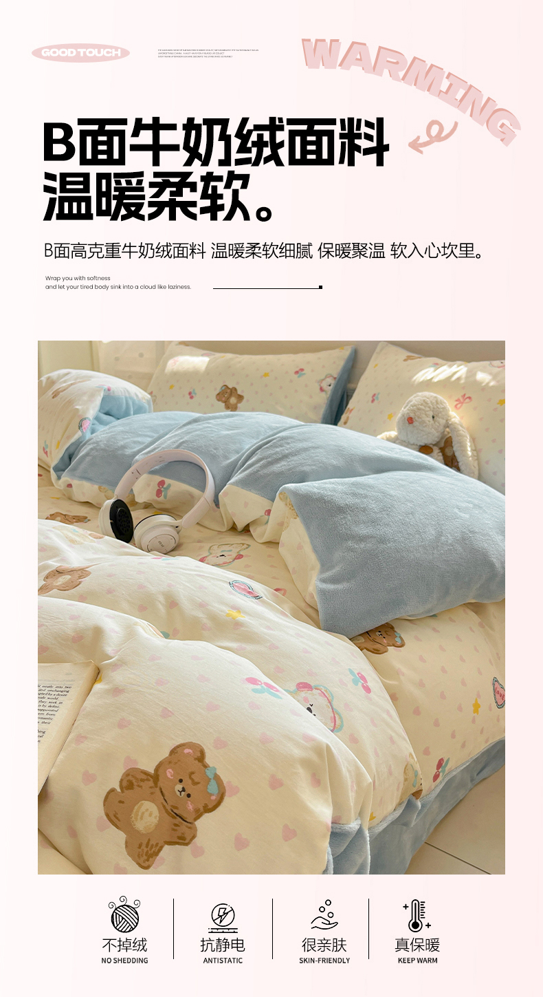 商品名称:吉象家纺 2025新款全棉牛奶绒印花四件套 棉绒-奶油甜心熊