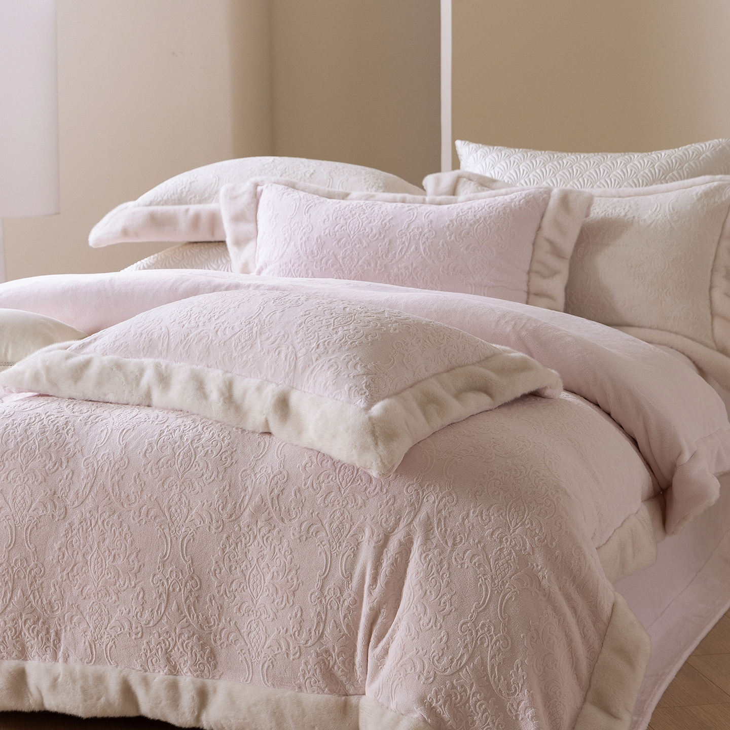(总)佳汐蓝家纺 2026新款牛奶绒雕花韩式雪纺花边四件套-莫妮卡(券后不低于298元),莫妮卡