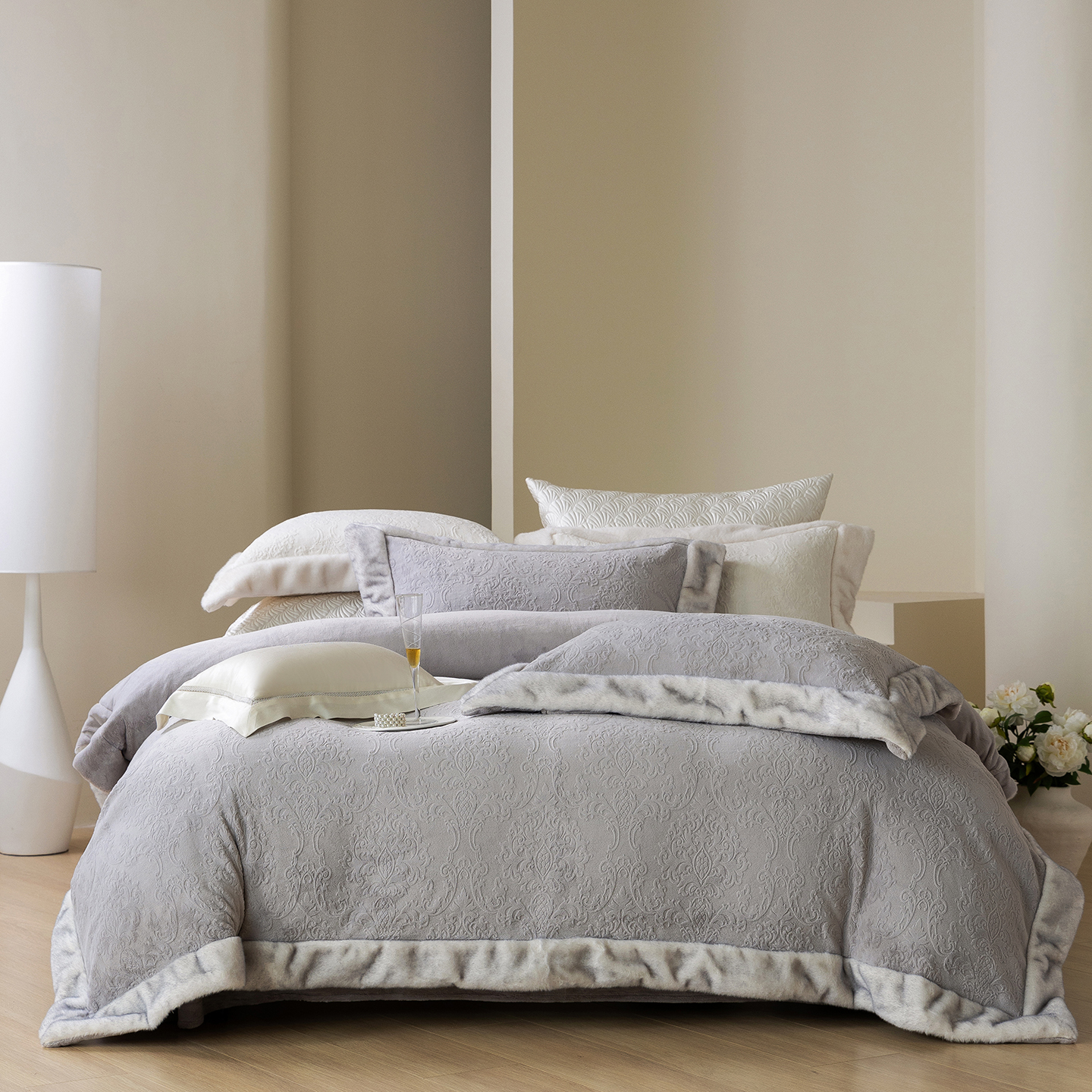 (总)佳汐蓝家纺 2026新款牛奶绒印花流光纱四件套-香奈(券后不低于328元),香奈