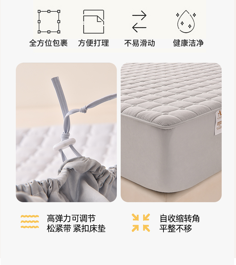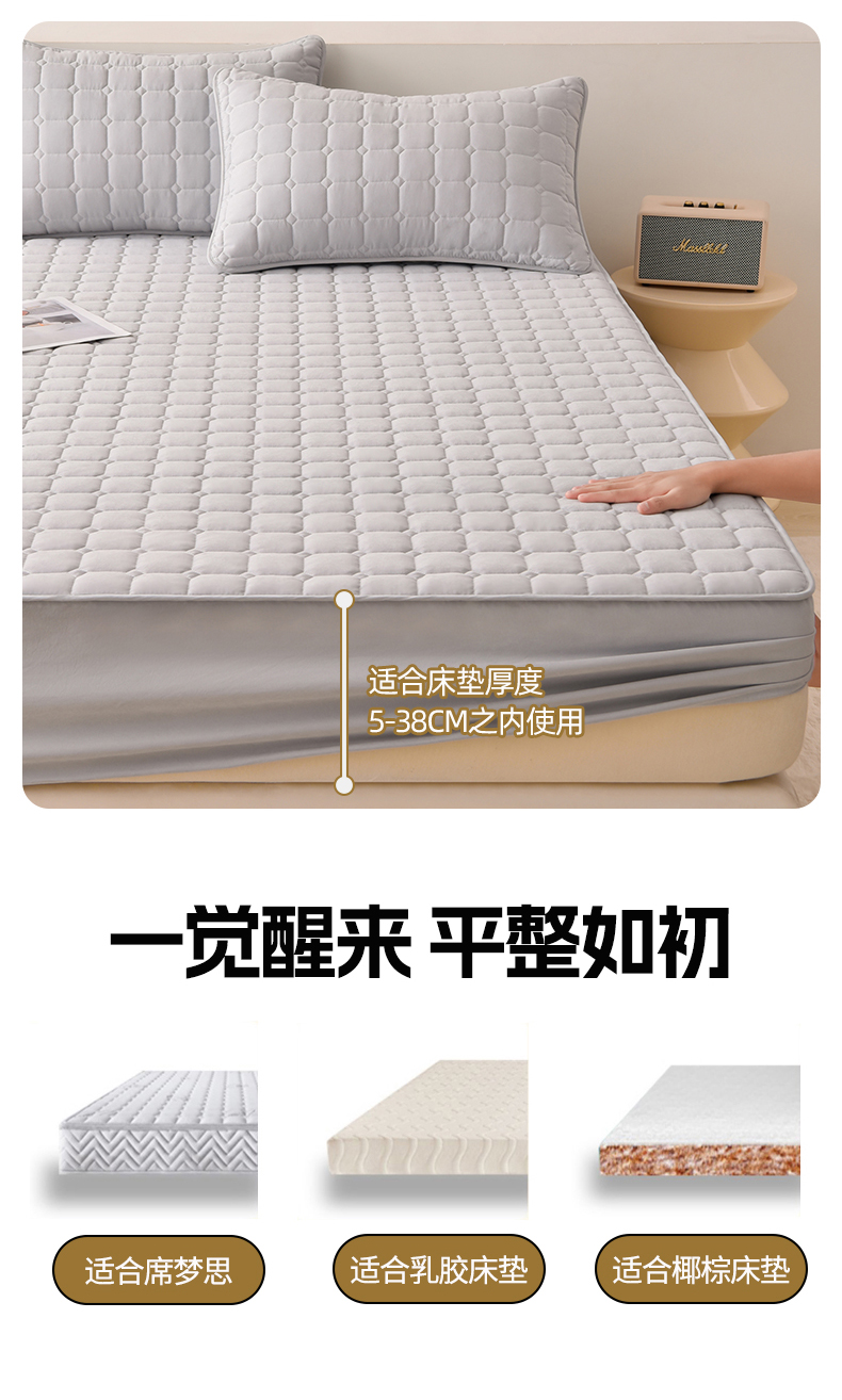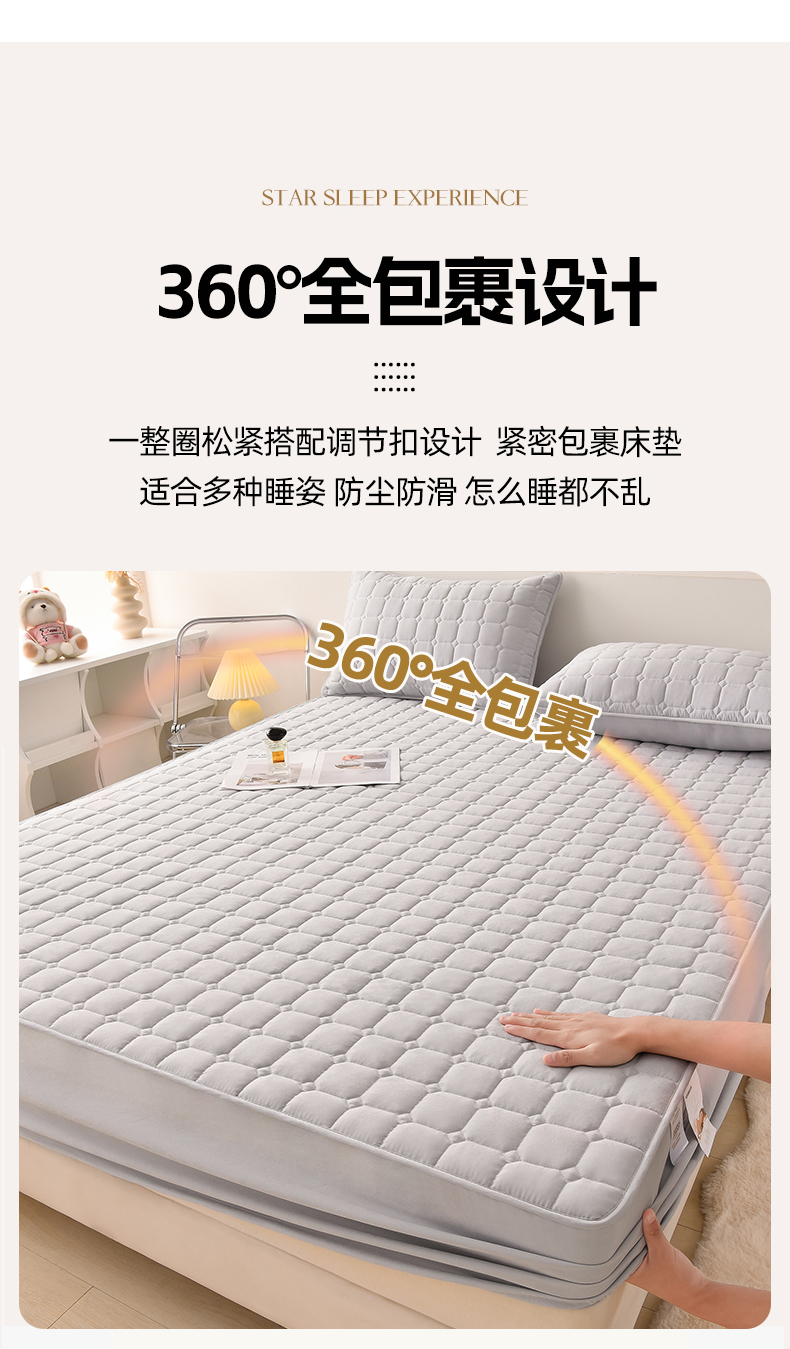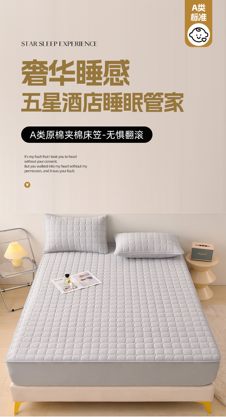 商品名称:优品惠 2025新款A类原棉夹棉床笠系列 浅灰