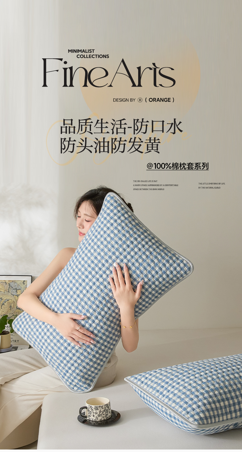 (总)芬晴家纺 2025新款全棉色织棉花枕套,本色,经典格,诺卡,清风-粉,清风-灰,清风-兰,日常