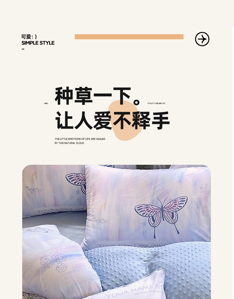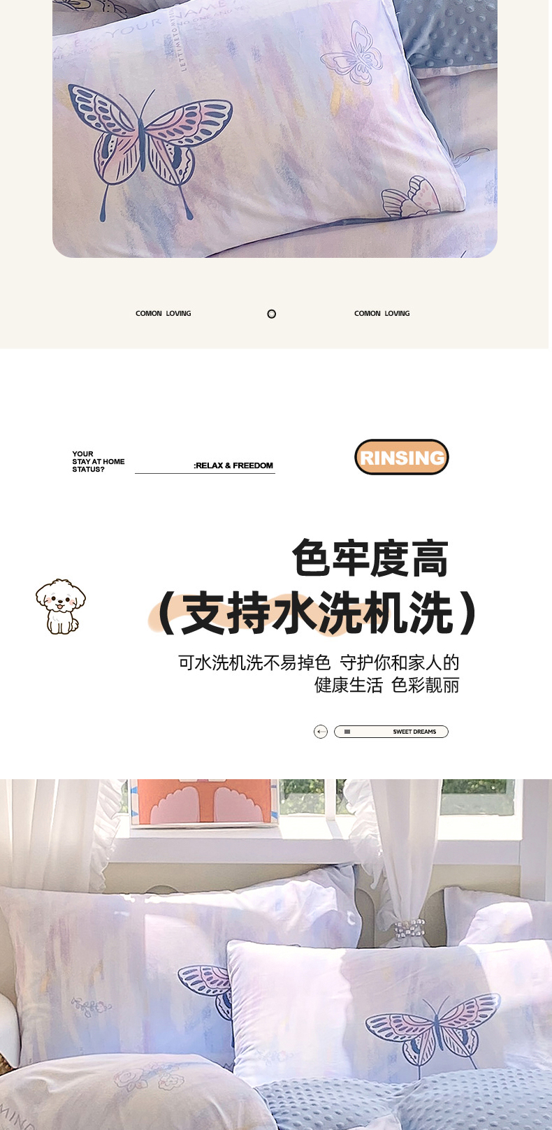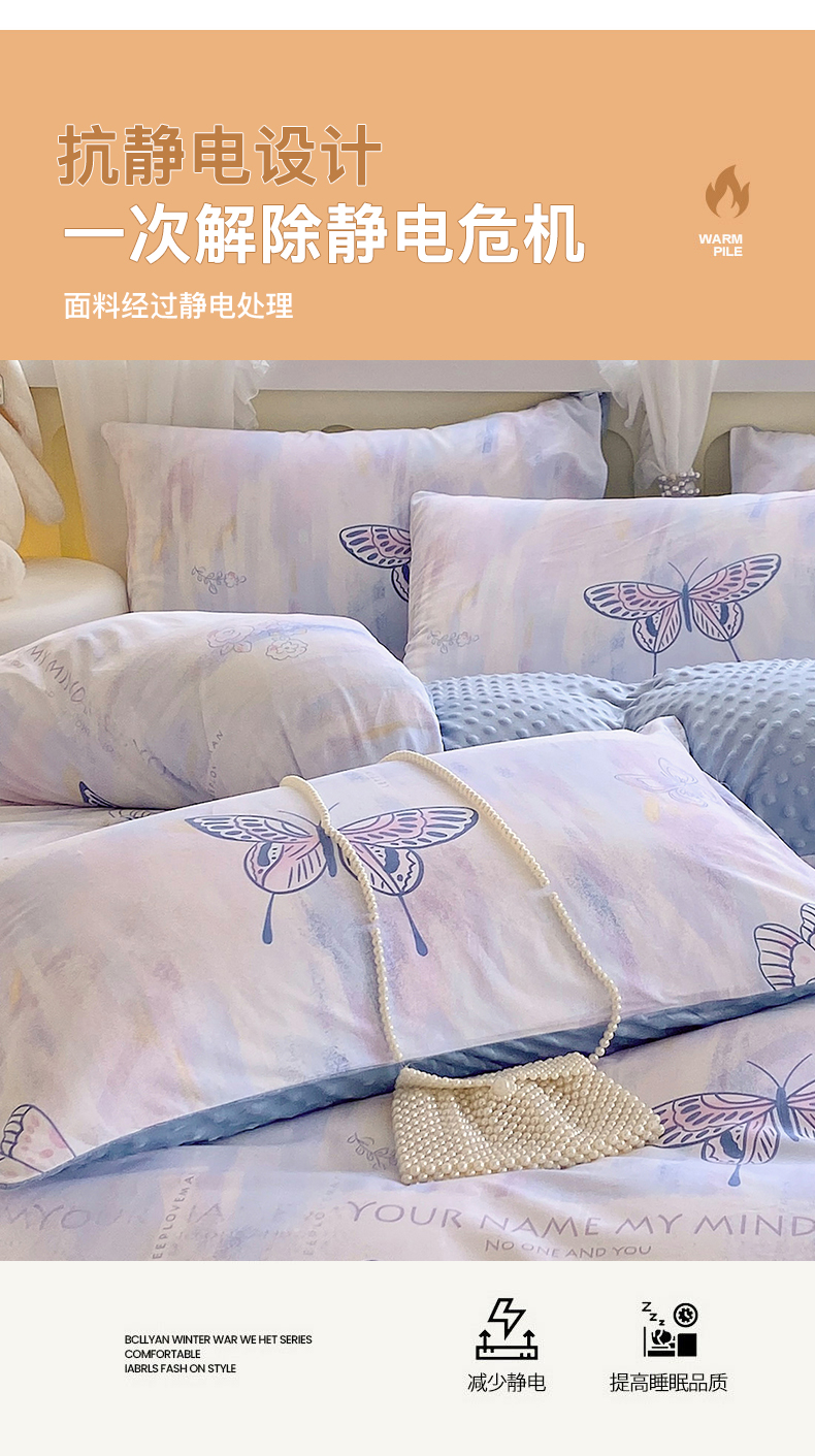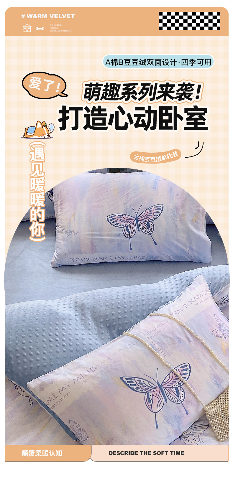 商品名称:金鑫汇家纺 2025新款全棉豆豆绒系列单枕套-棉加绒系列 棉加豆豆绒-梦蝶