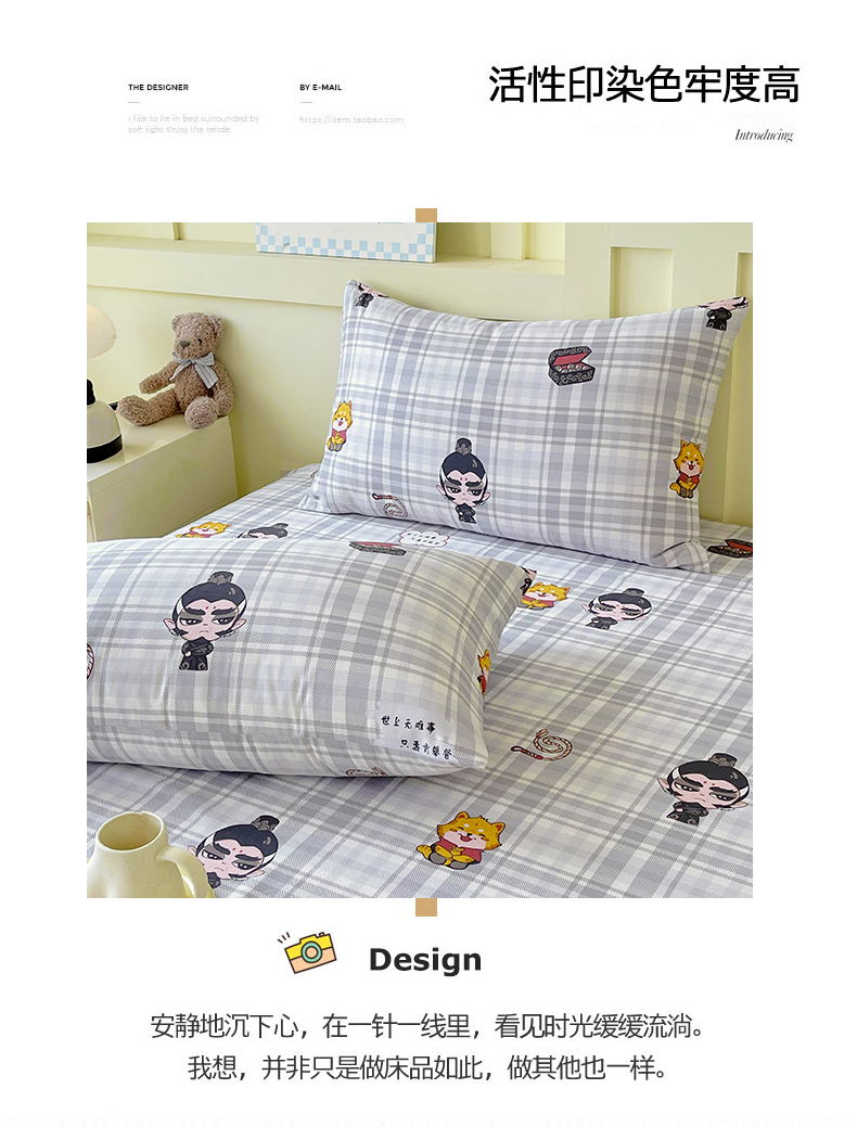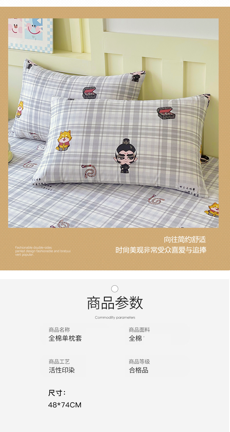 商品名称:金鑫汇家纺 2026春夏新款全棉纯棉印花单枕套 枕套单件 无畏申公豹·灰