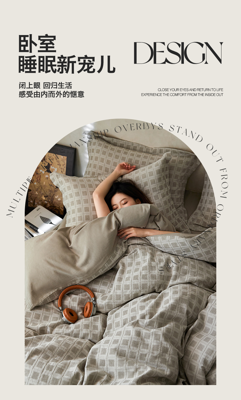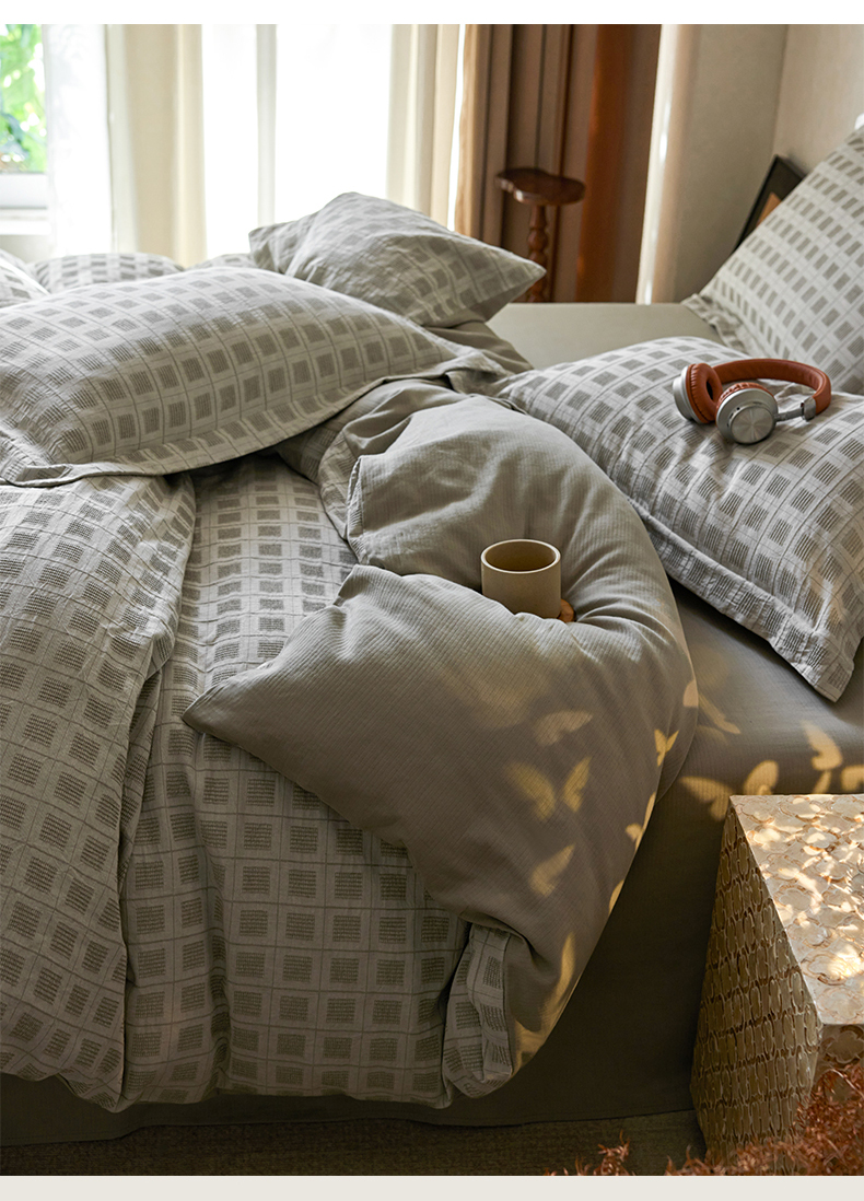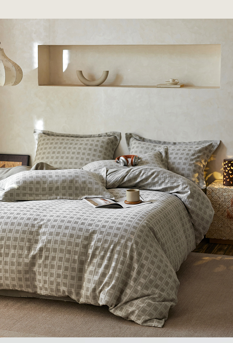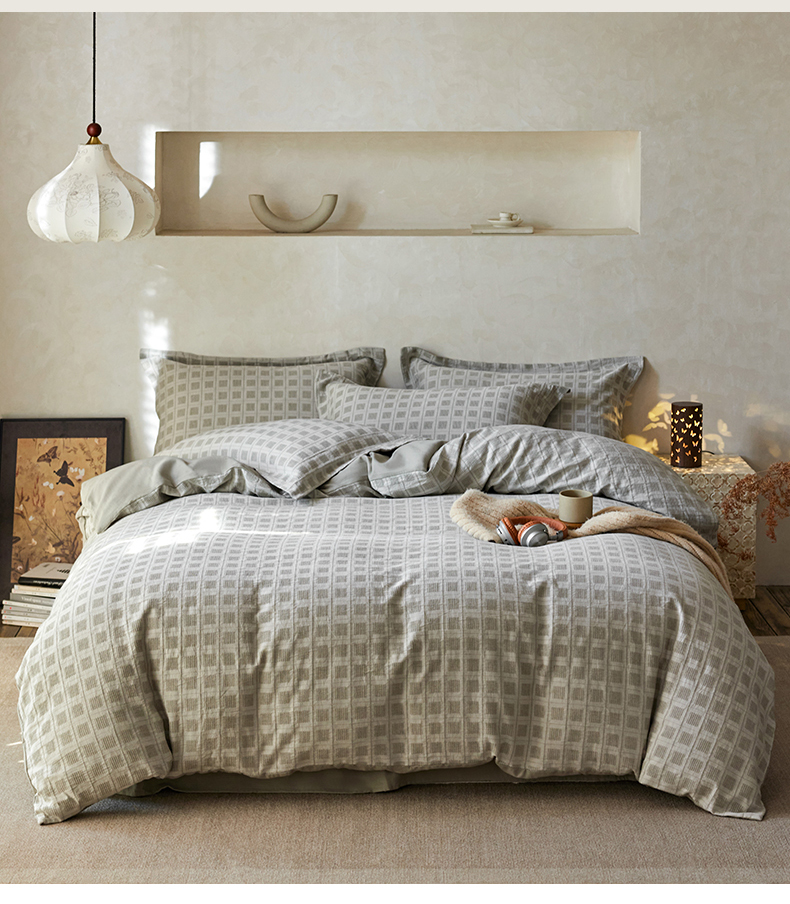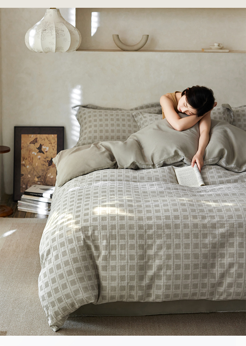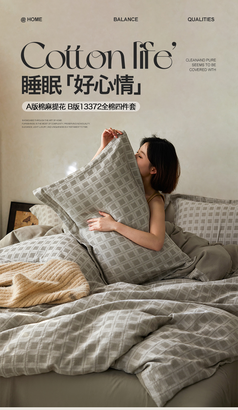 (总)笙意家纺 2025新款全棉A版棉麻B版13372四件套-云缦系列,云缦粉,云缦灰,云缦米