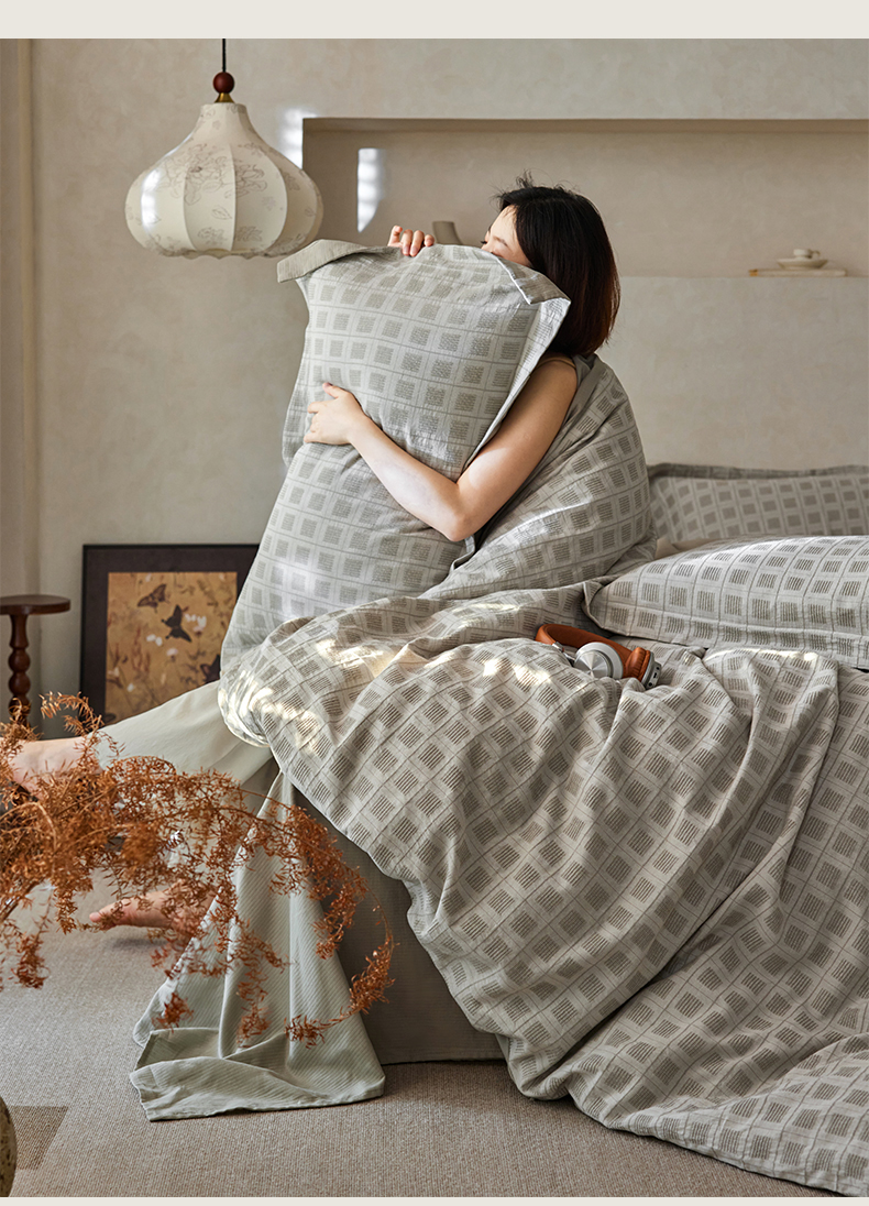 笙意家纺 2025新款全棉A版棉麻提花B版13372四件套-乔屿系列 乔屿绿