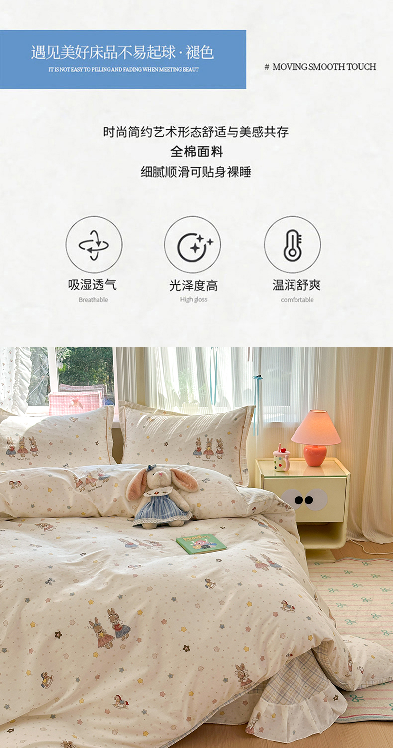 (总)乐童家纺 2026新款全棉纯棉拼接花边小清新工艺款四件套,彩虹木马,春日小兔,花田兔兔,凯莉梦境,口袋故事,浪花轻歌,毛线彩虹,梦境手账,千禧少女咖,少女日记,心跳瞬间