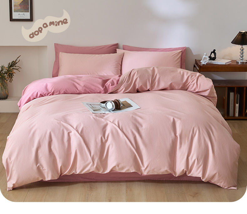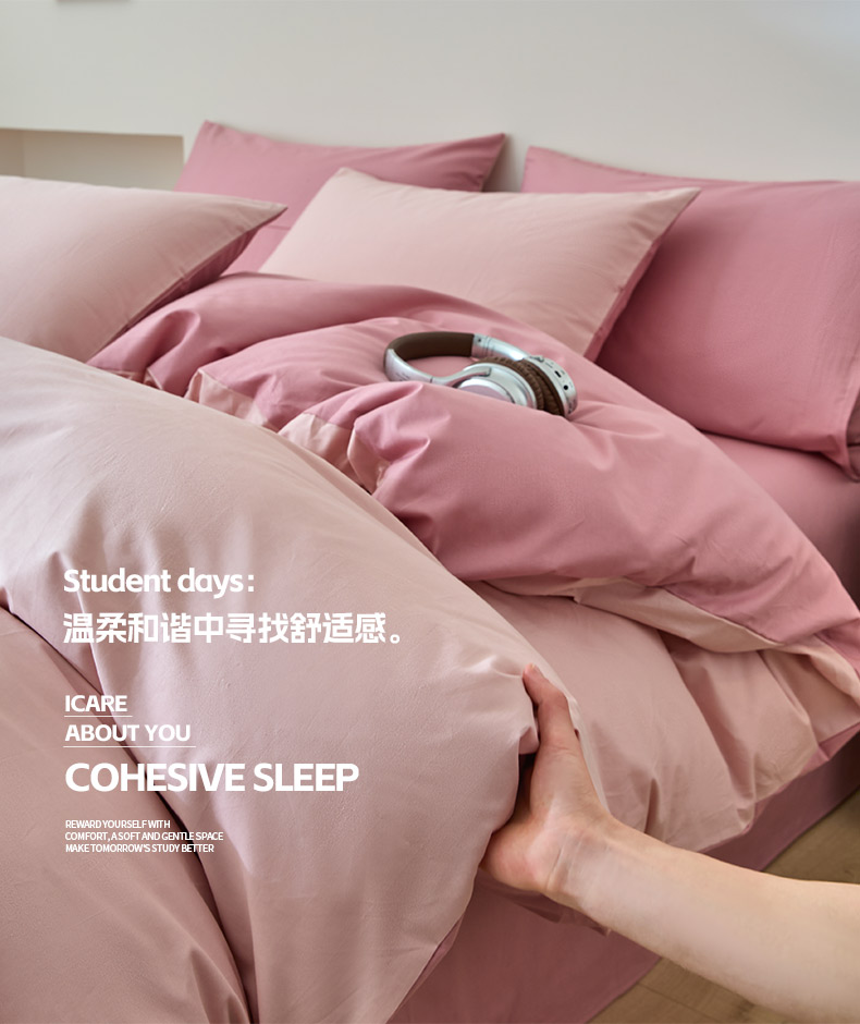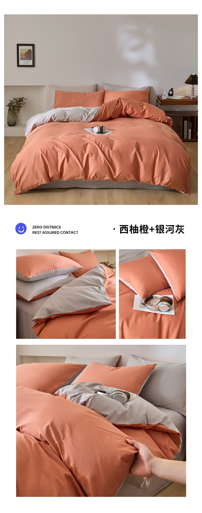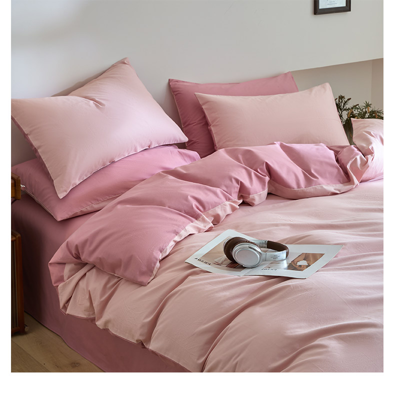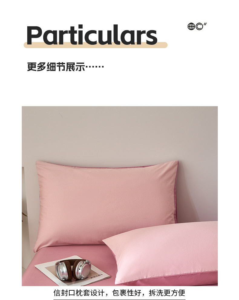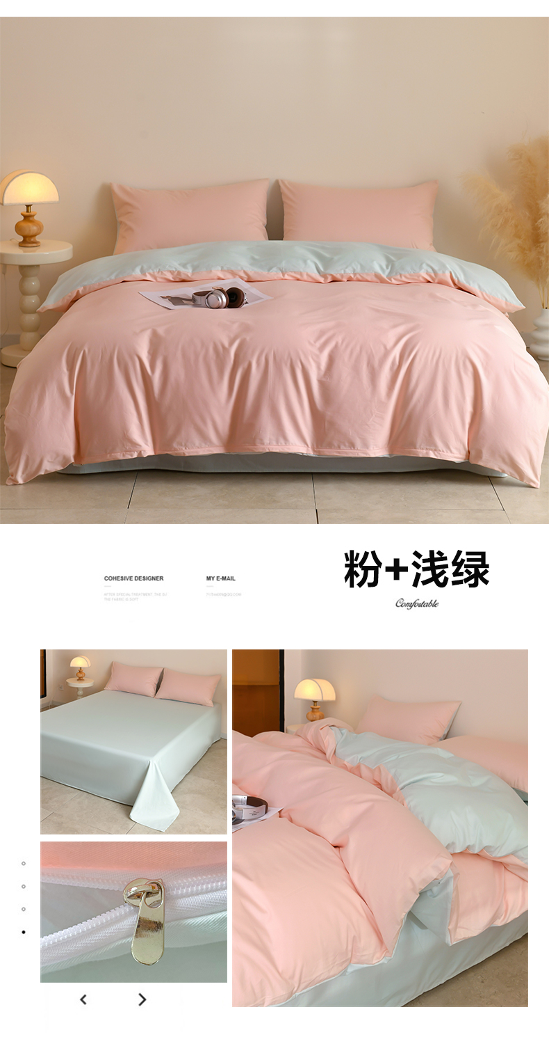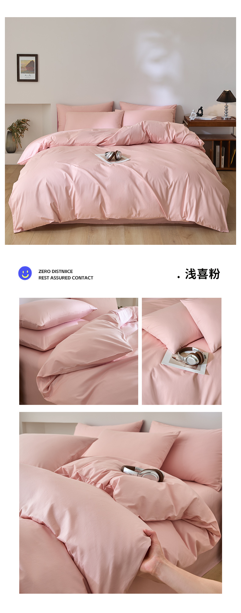 当前位置: 91家纺网 > 商品网购 > 床品套件 > 四件套 > 全棉普通四件套 > 泽西家纺+V17798841158发大图 2026新品A类全棉13376简约纯色双拼全棉四件套单被套枕套三件套 浅喜粉+暖豆沙