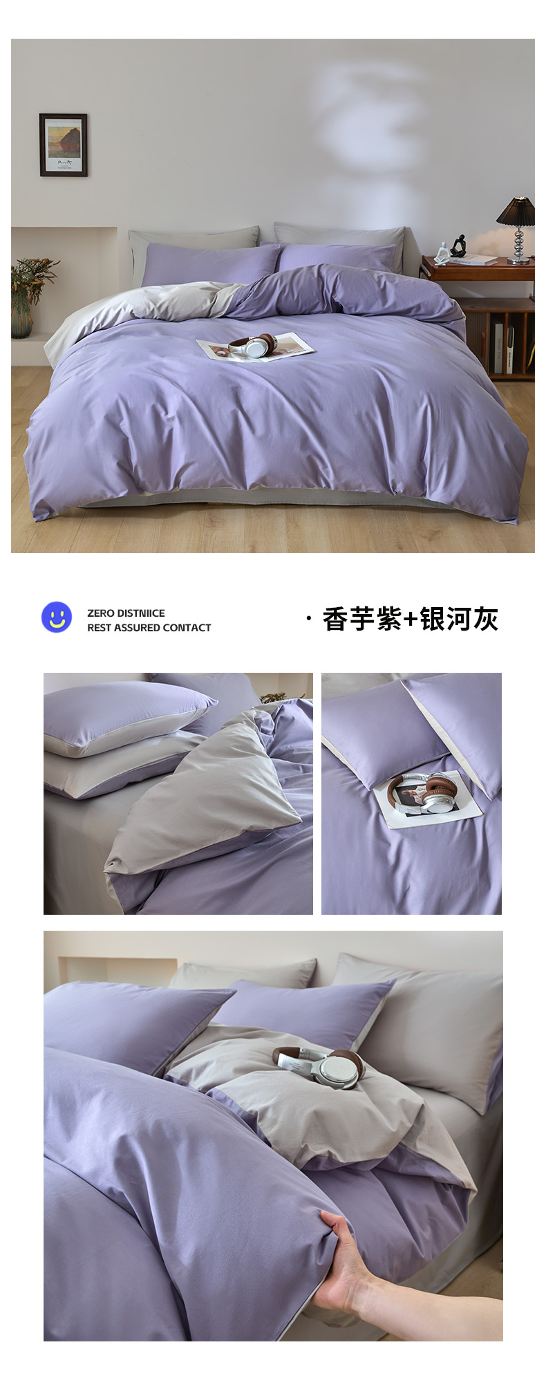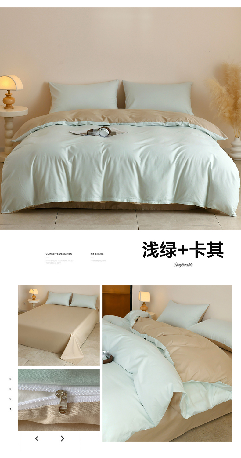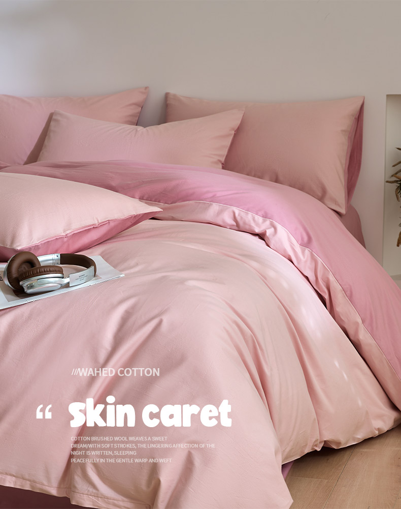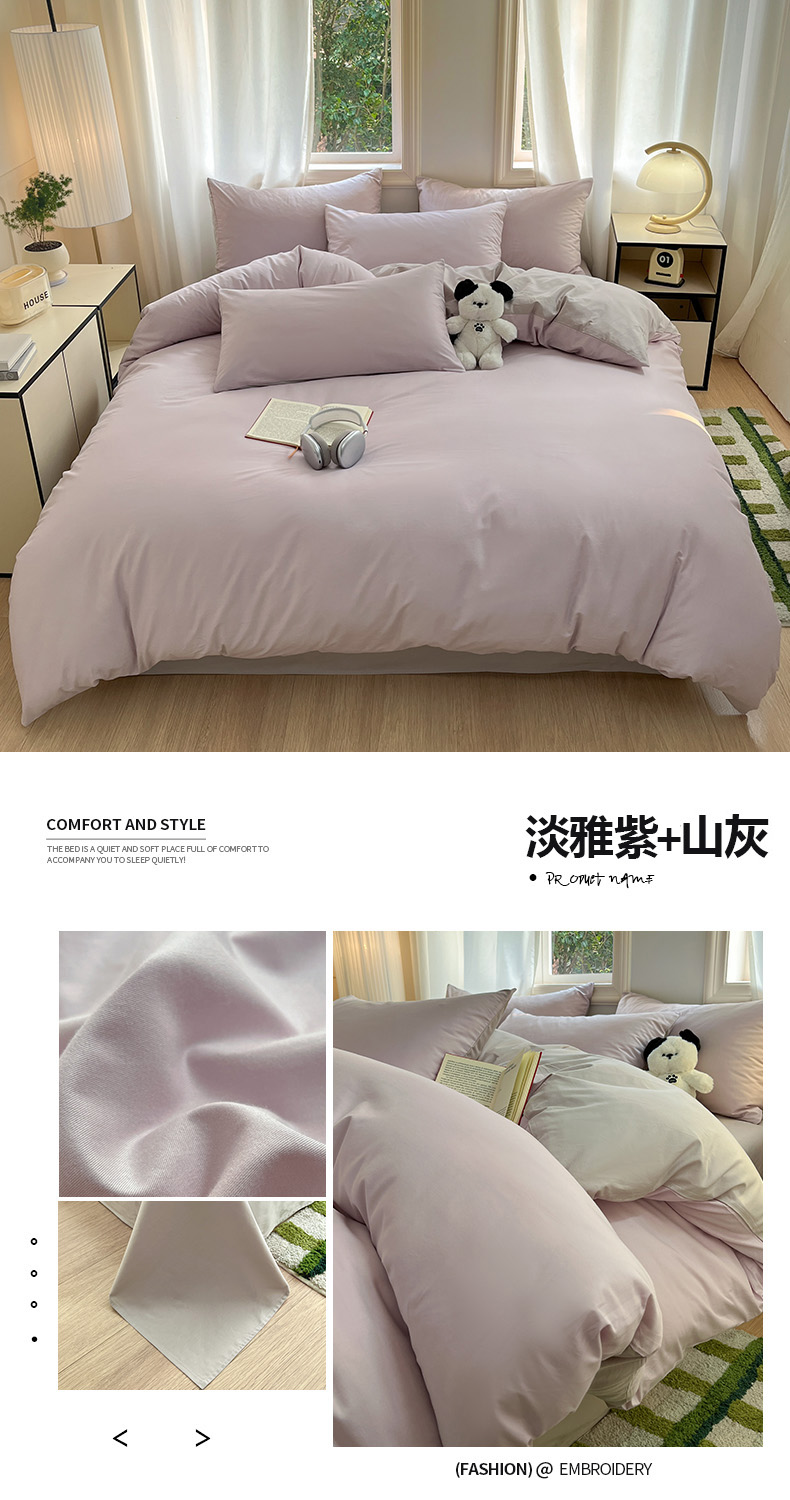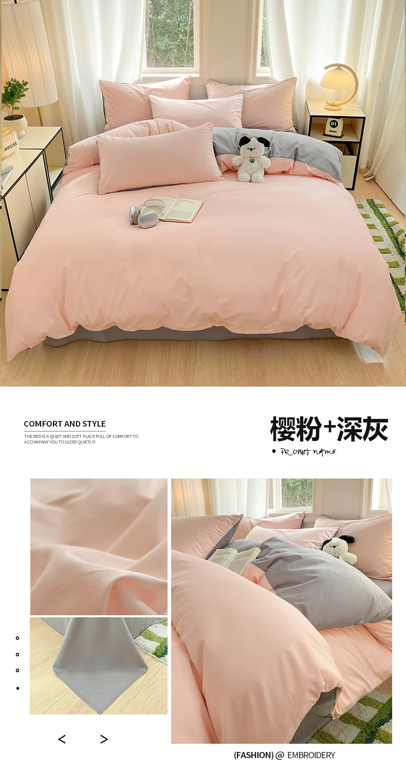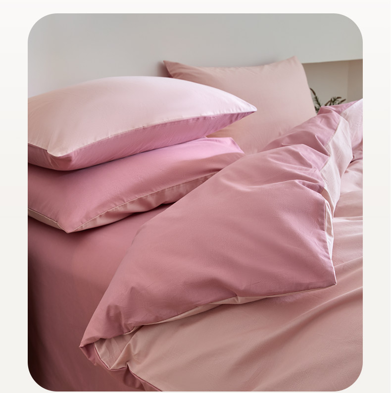 当前位置: 91家纺网 > 商品网购 > 床品套件 > 四件套 > 全棉普通四件套 > 泽西家纺+V17798841158发大图 2026新品A类全棉13376简约纯色双拼全棉四件套单被套枕套三件套 浅喜粉+暖豆沙