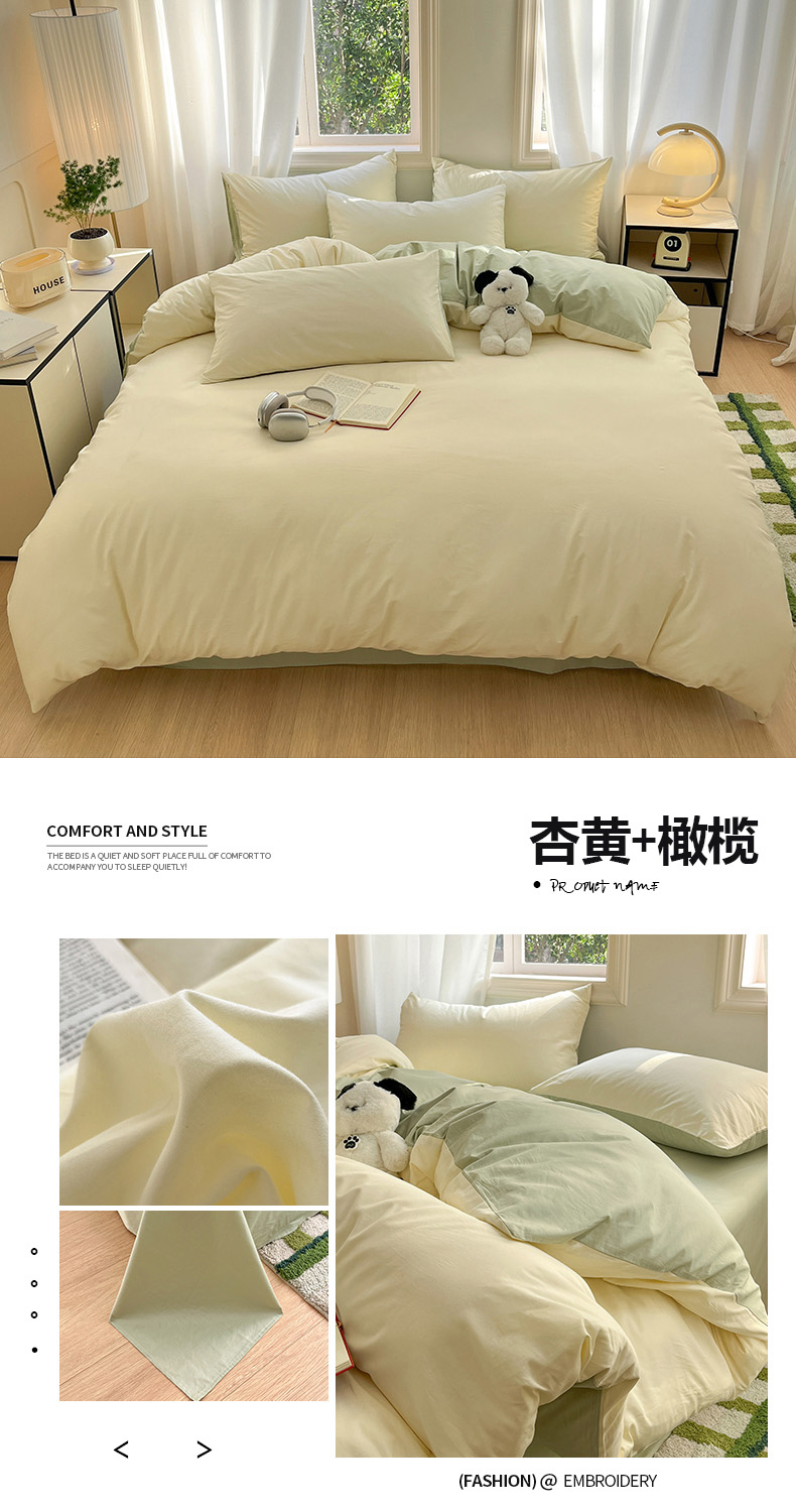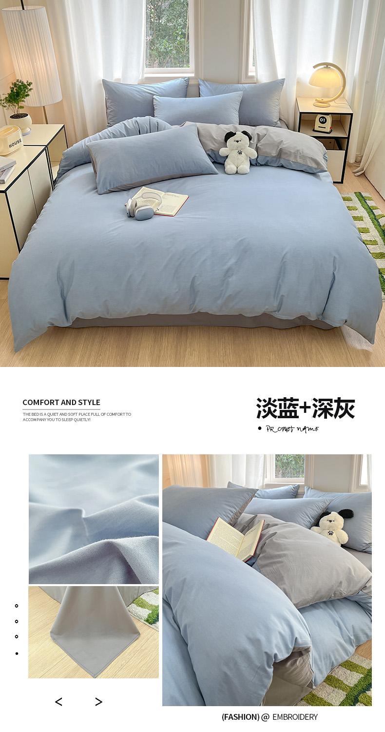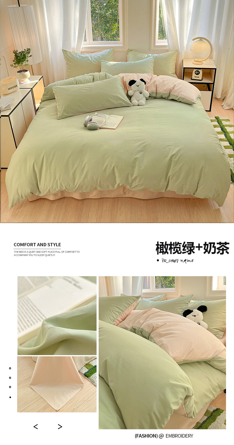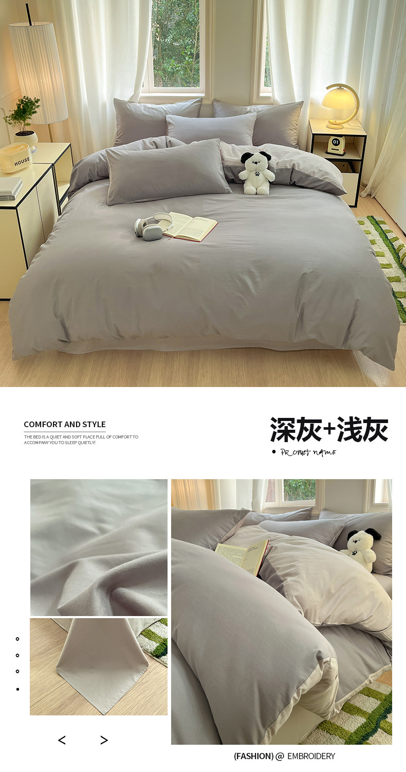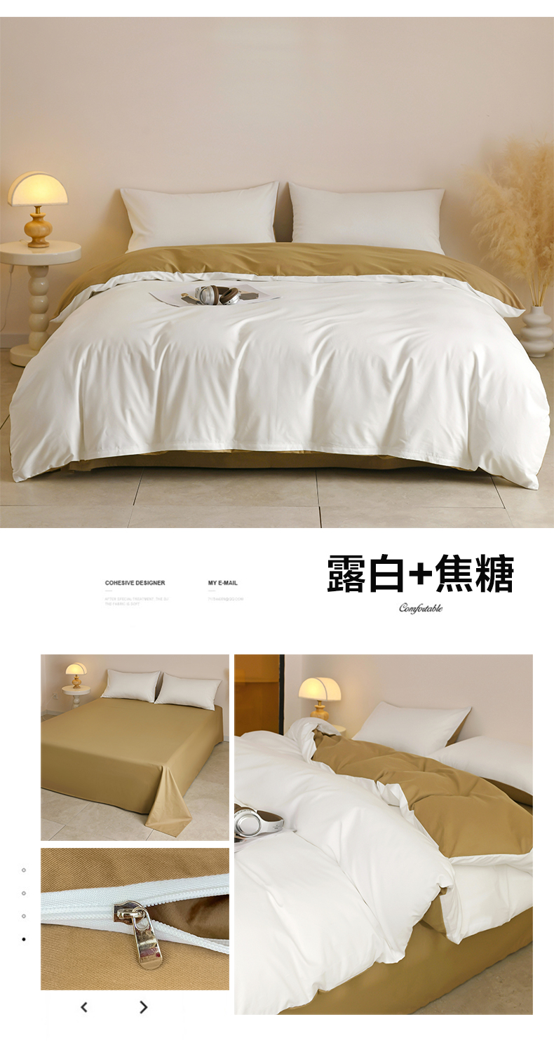 当前位置: 91家纺网 > 商品网购 > 床品套件 > 四件套 > 全棉普通四件套 > 泽西家纺+V17798841158发大图 2026新品A类全棉13376简约纯色双拼全棉四件套单被套枕套三件套 浅喜粉+暖豆沙