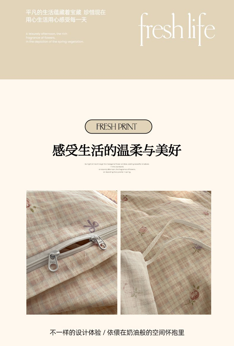 商品名称:典曼家纺 2026新款全棉纯棉有氧双层纱贝壳边四件套 贝壳边玫瑰物语