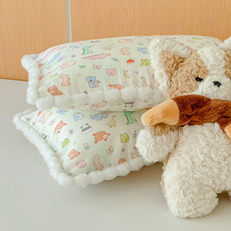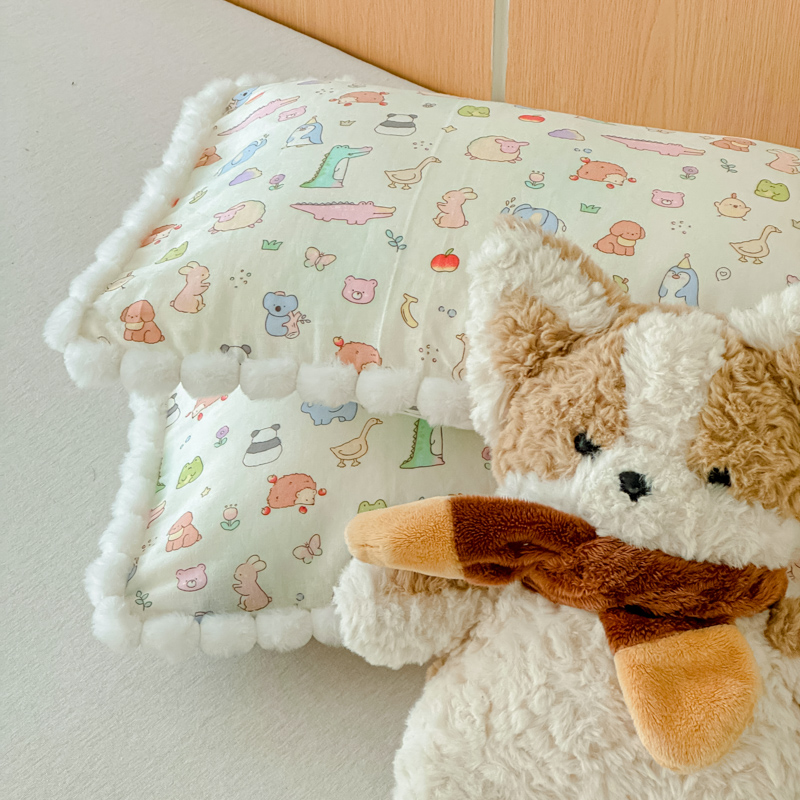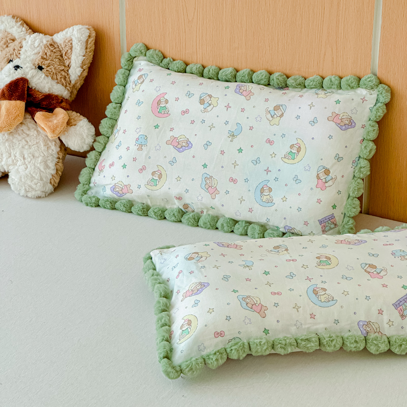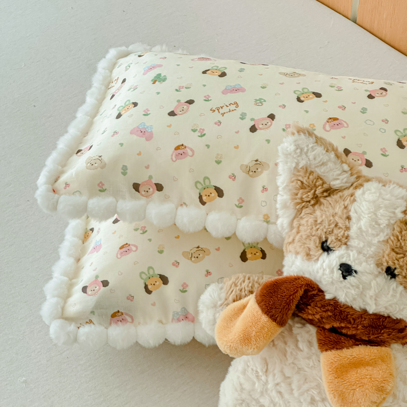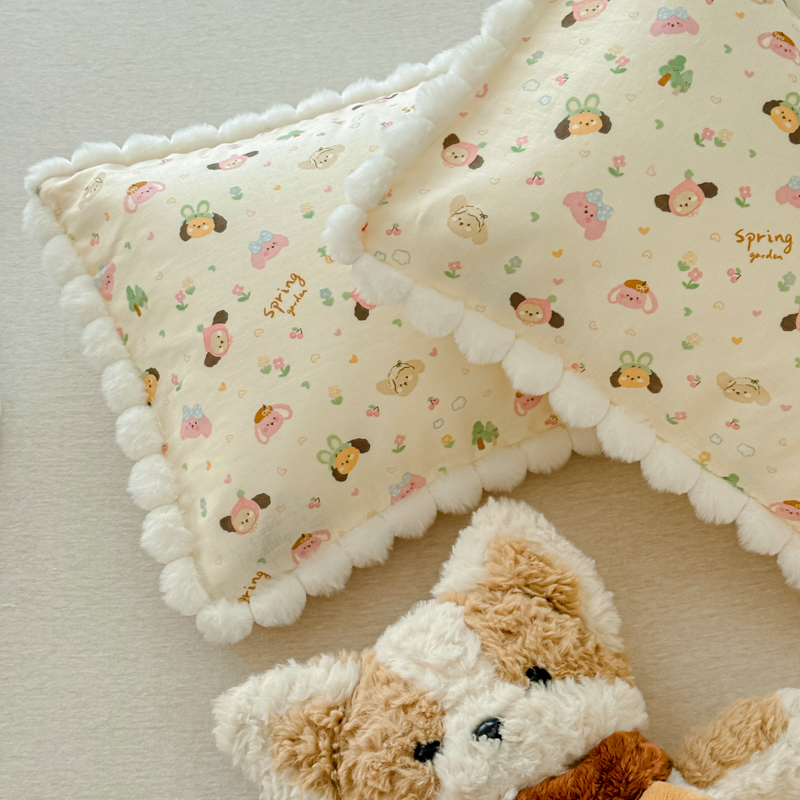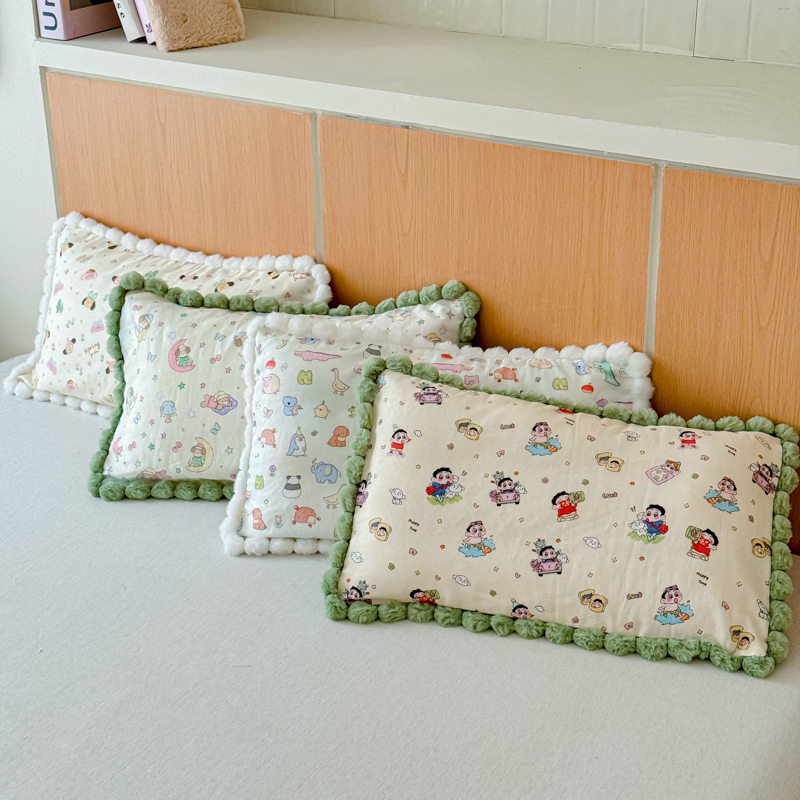 金丝鸟家纺 2026新款全棉双层纱毛球款枕套多规格儿童枕套 软萌游园会