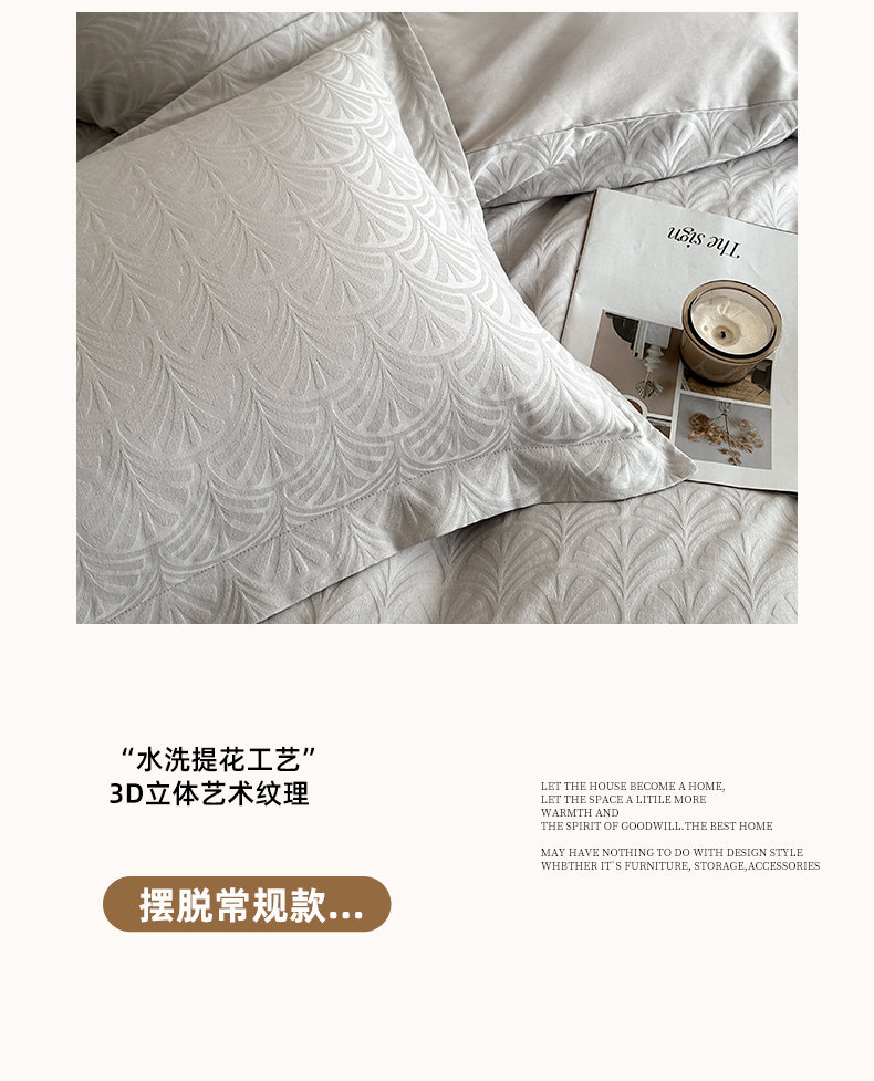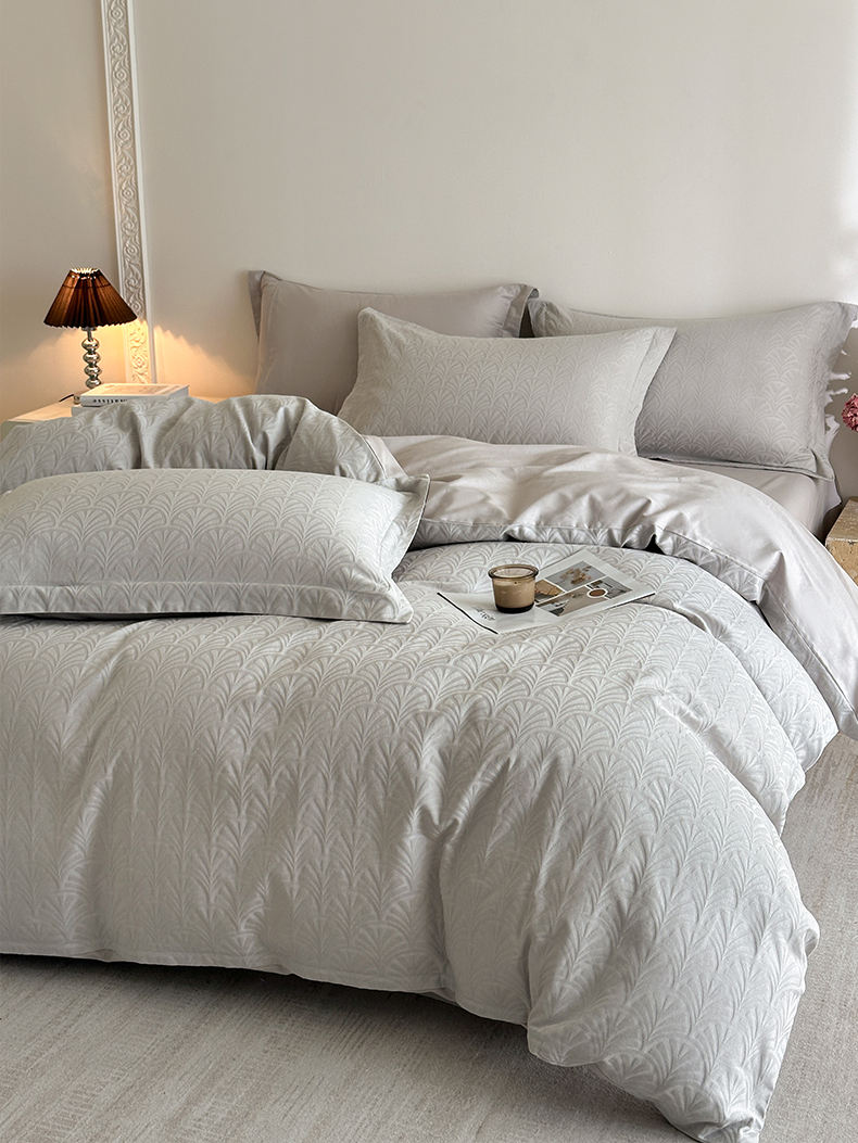 商品名称:格里芬家纺 2026新款全棉水洗立体浮雕提花纯棉四件套 伊贝斯-银灰
