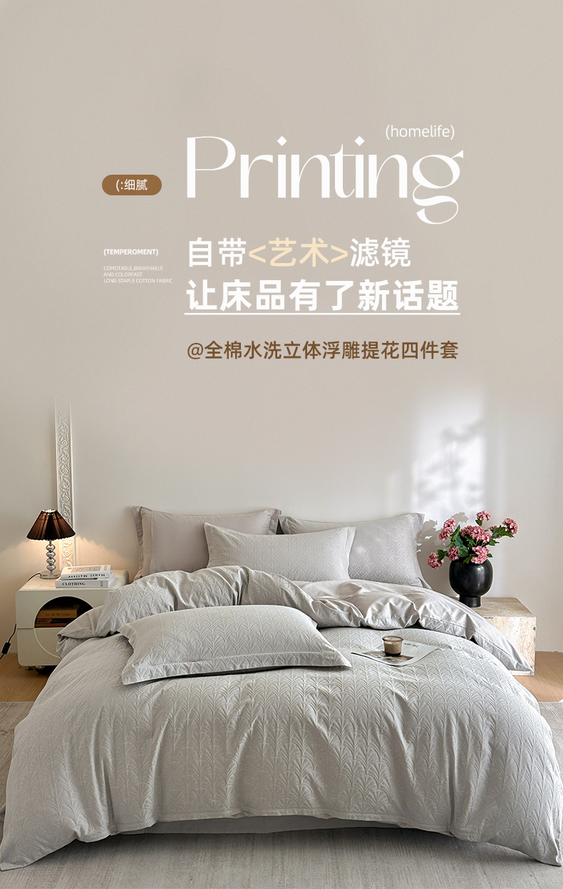 格里芬家纺 2026新款全棉水洗立体浮雕提花纯棉四件套 伊贝斯-银灰