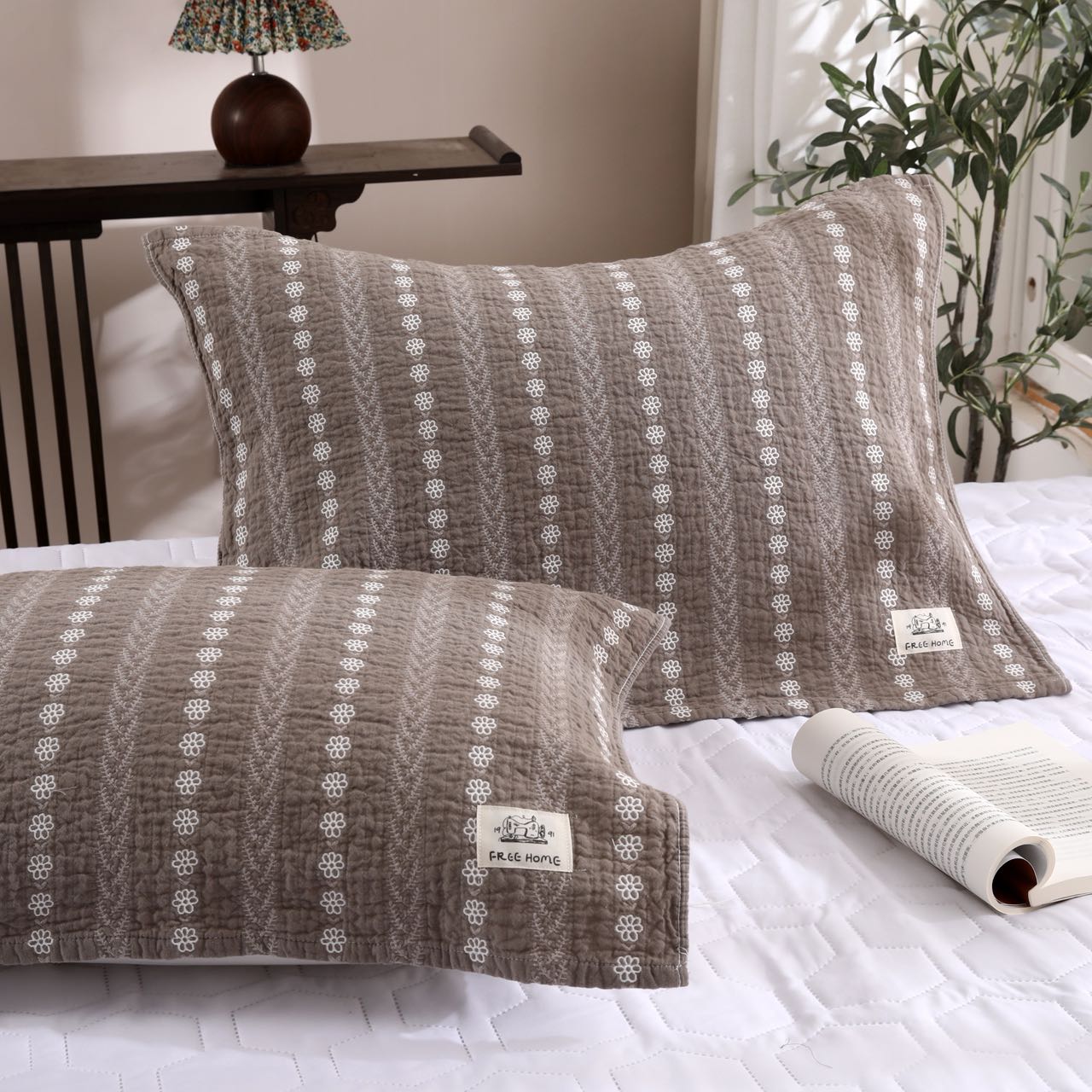 (总)沐瑟家纺 2026新款纯棉四层纱布枕巾-华夫生活,华夫生活-浅咖,华夫生活-深灰,组合图