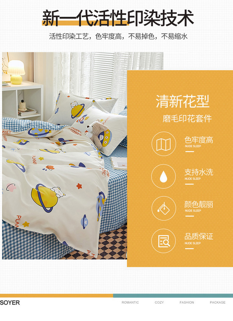 商品名称:世爵 2026新款亲肤磨毛印花单被套 星际探险