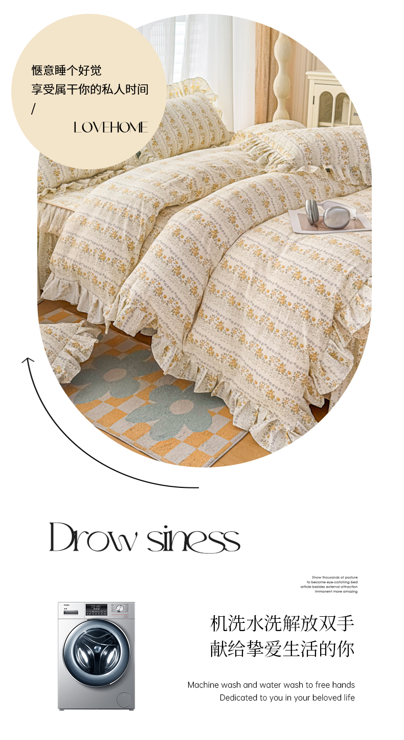 当前位置: 91家纺网 > 商品网购 > 床品套件 > 四件套 > 其它四件套 > 家之硕家纺 2026新款精仿棉夹棉床裙四件套 彩韵