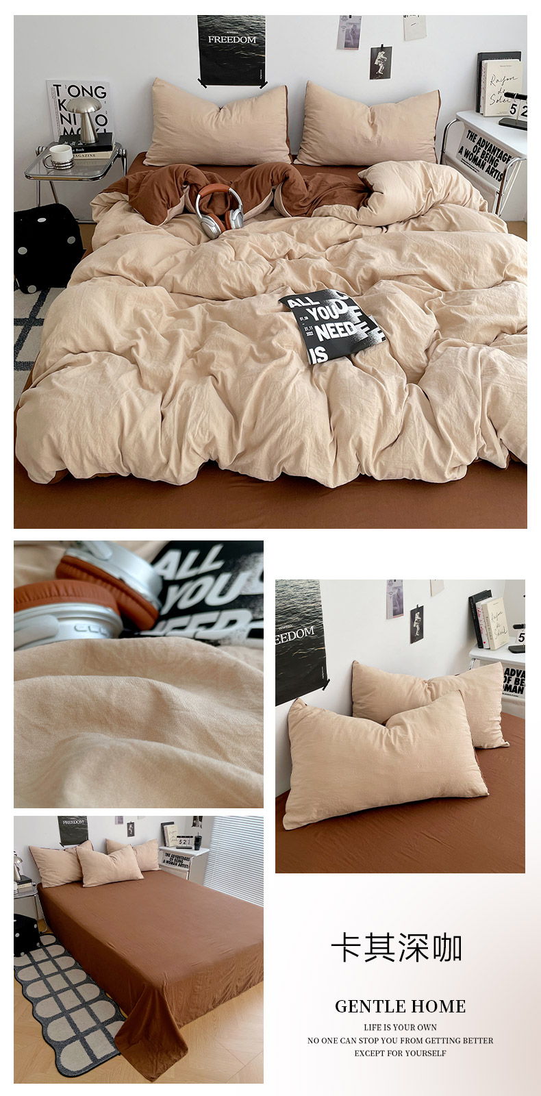 当前位置: 91家纺网 > 商品网购 > 床品套件 > 四件套 > 化纤普通四件套 > 卡斯诺家纺馆 2026新款水洗棉纯色双拼四件套(下载文件包含买家秀) 卡其深咖
