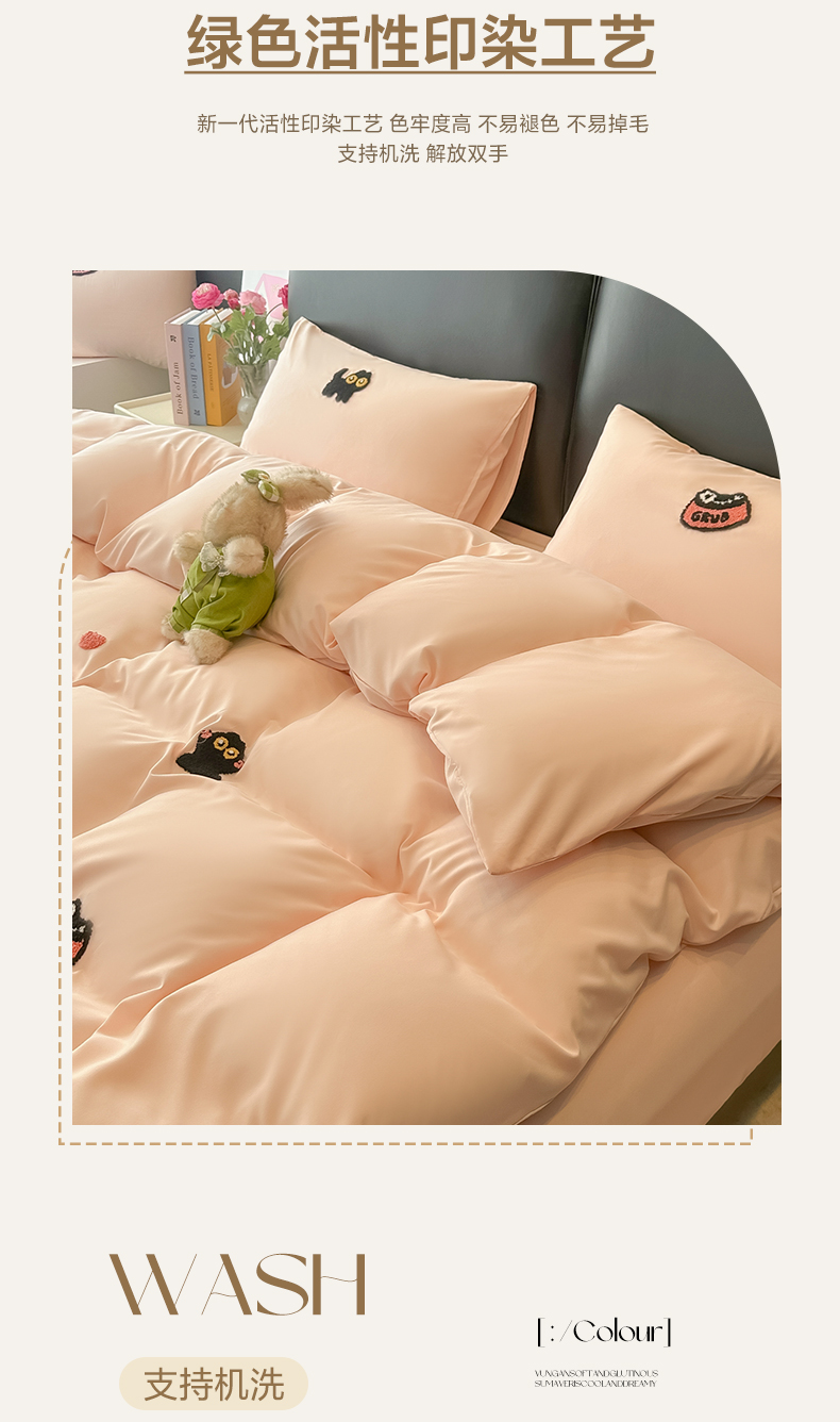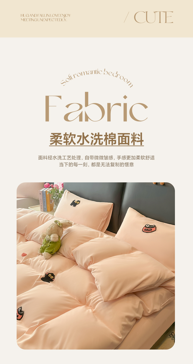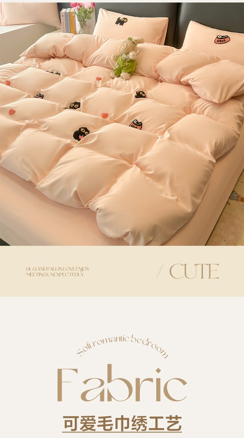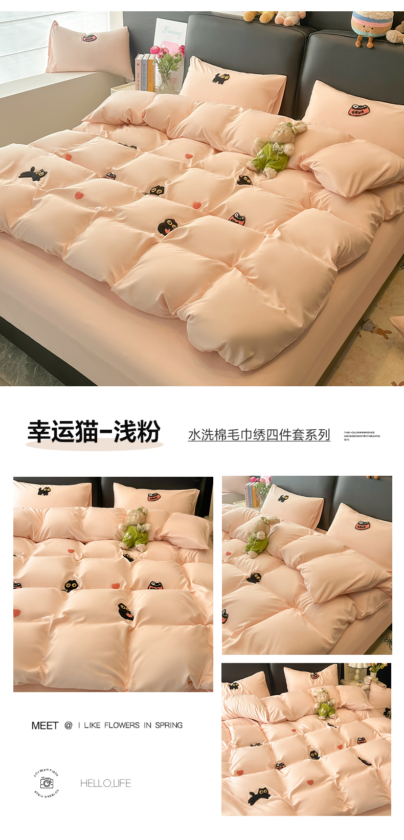 当前位置: 91家纺网 > 商品网购 > 床品套件 > 四件套 > 水洗棉四件套 > 韩巢家纺 2026新款水洗棉毛巾绣四件套 幸运猫-浅粉
