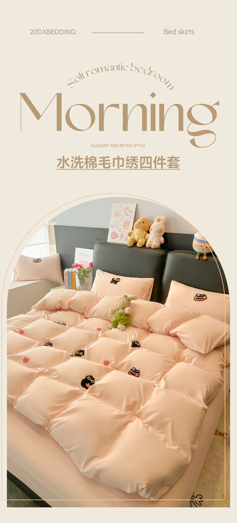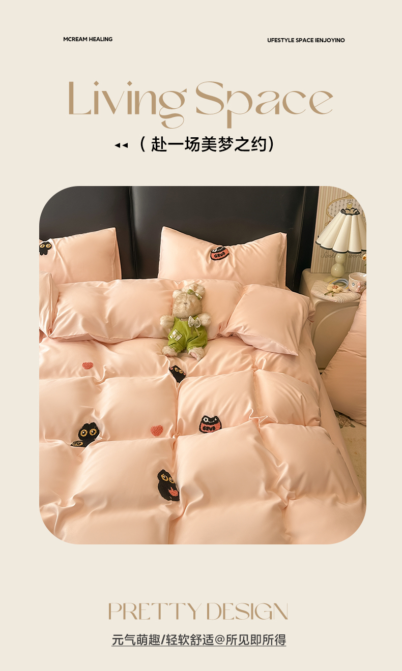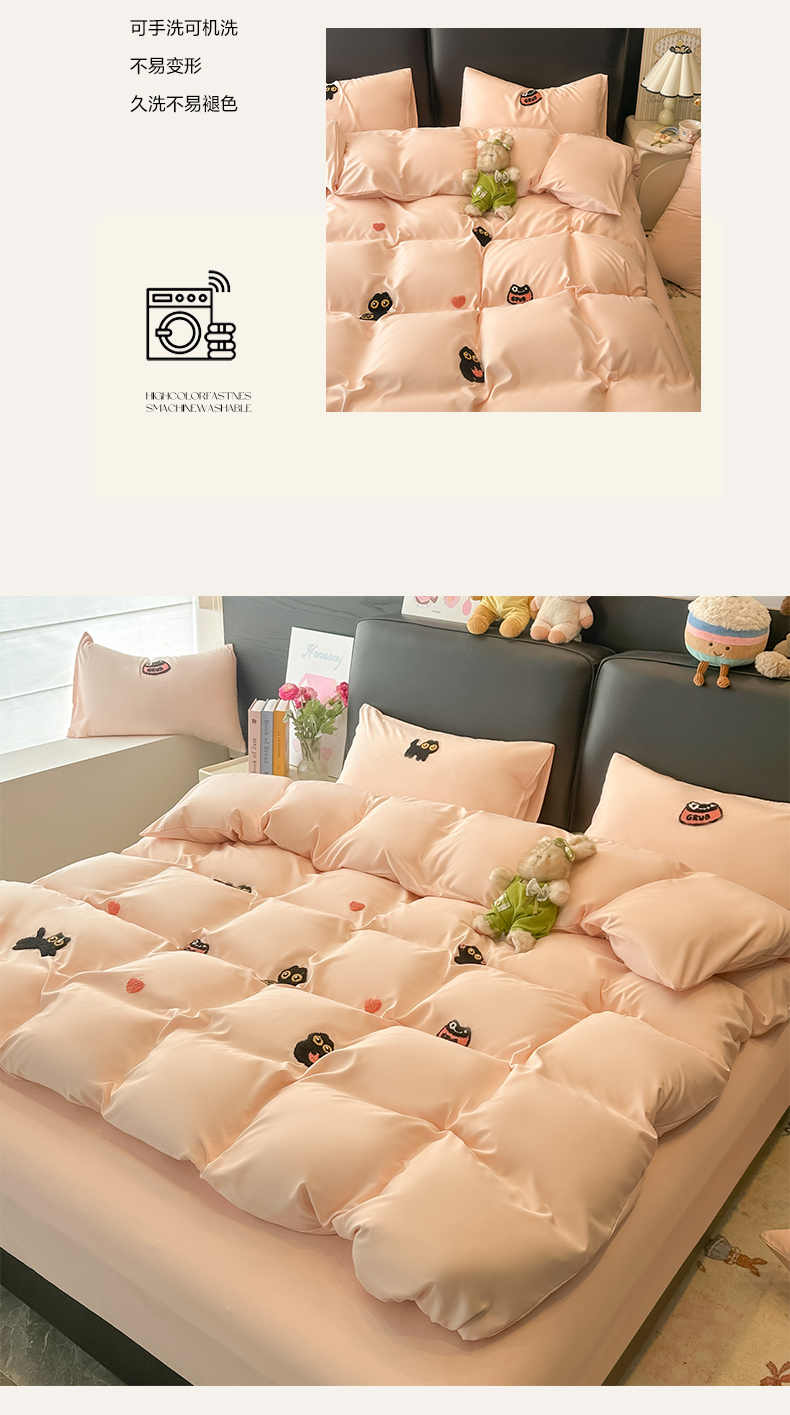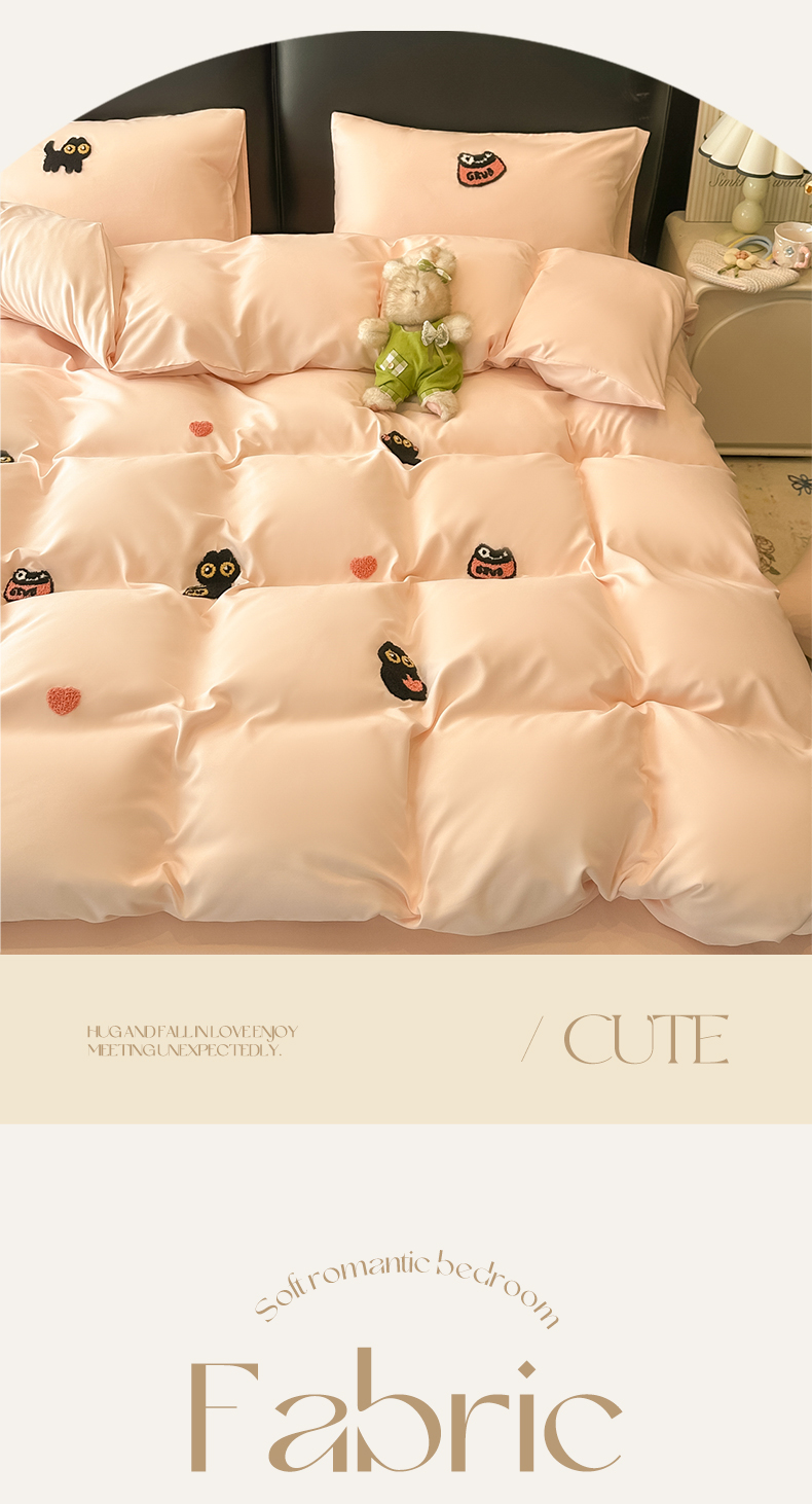 当前位置: 91家纺网 > 商品网购 > 床品套件 > 四件套 > 水洗棉四件套 > 韩巢家纺 2026新款水洗棉毛巾绣四件套 幸运猫-浅粉