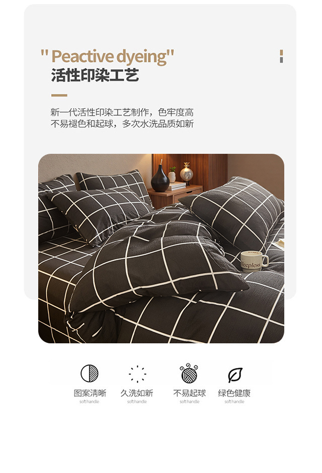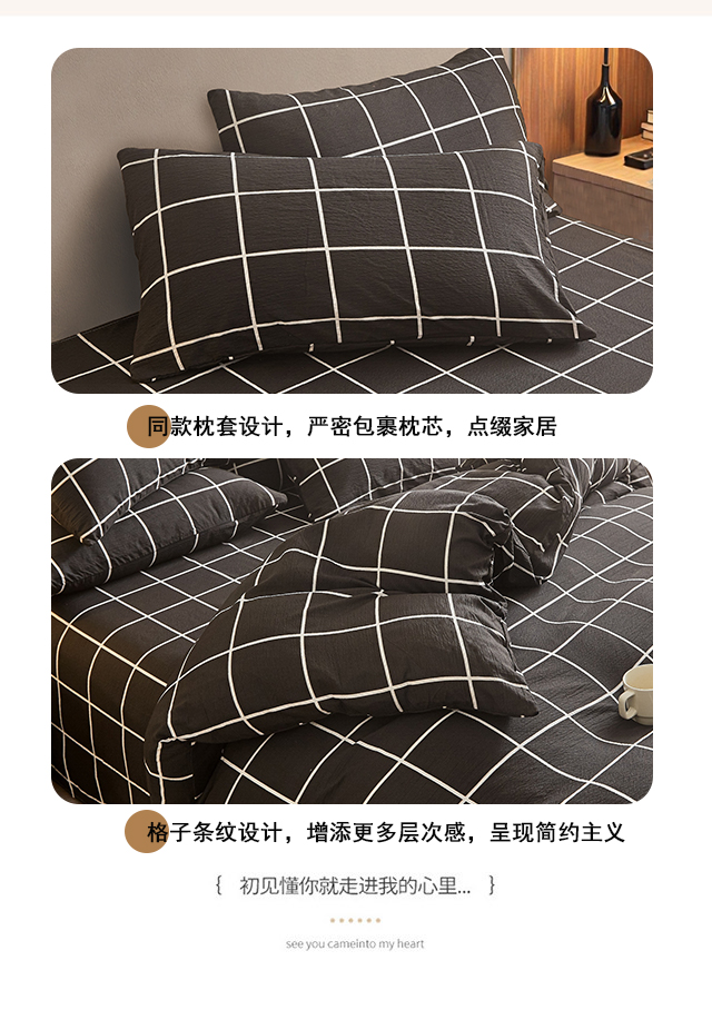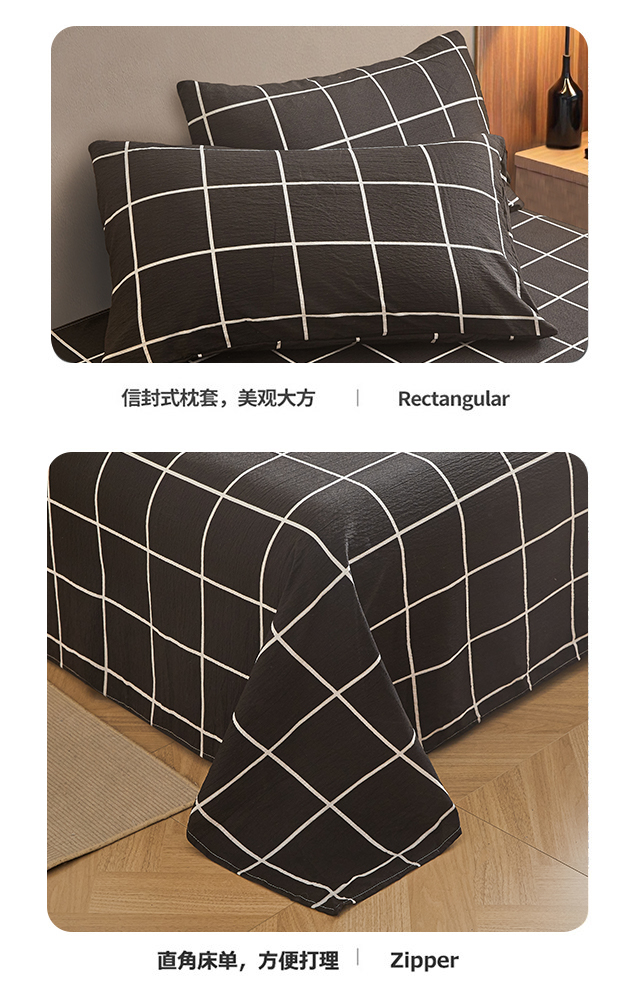 当前位置: 91家纺网 > 商品网购 > 床品套件 > 四件套 > 水洗棉四件套 > 友承家纺 2026最新款双层纱水洗棉被套单件150x200x230被罩学生宿舍三件套四件套床上用品a类母婴 黑白格