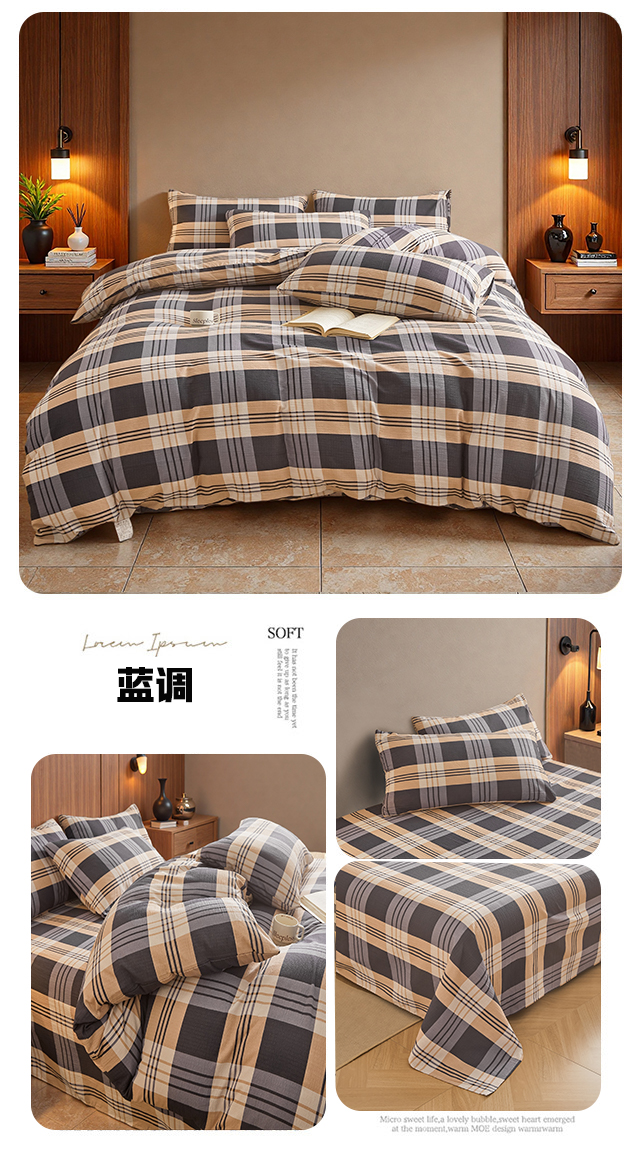 当前位置: 91家纺网 > 商品网购 > 床品套件 > 四件套 > 水洗棉四件套 > 友承家纺 2026最新款水洗棉无印风双层纱木棉四件套被套床单卧室床上用品学生宿舍被罩三件套床单枕套 蓝调