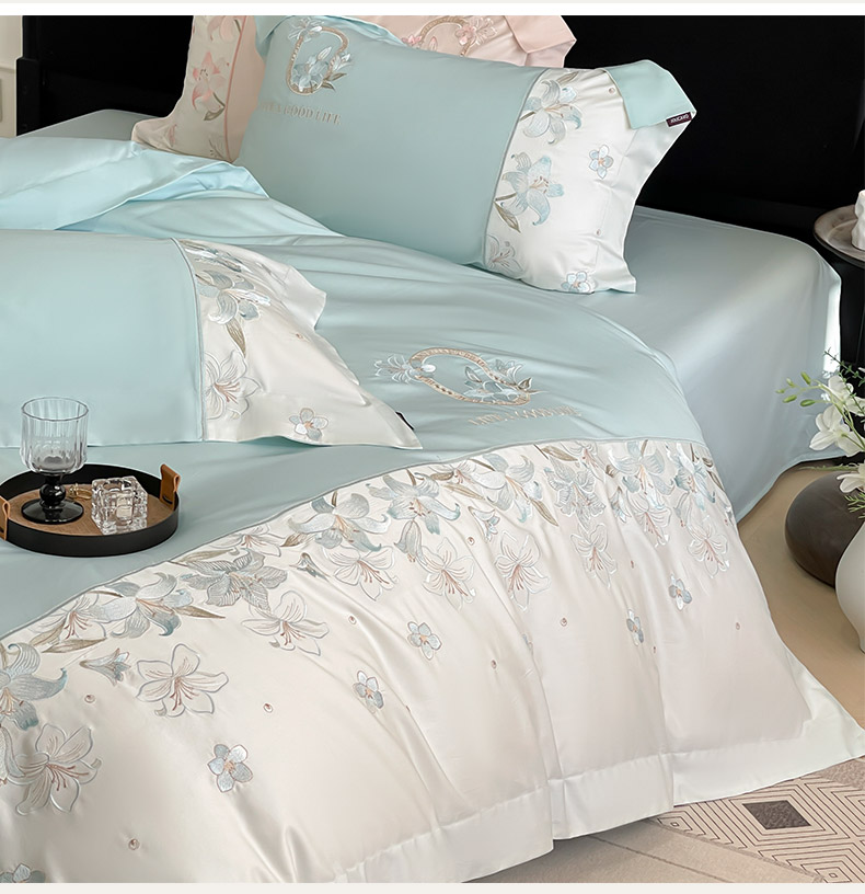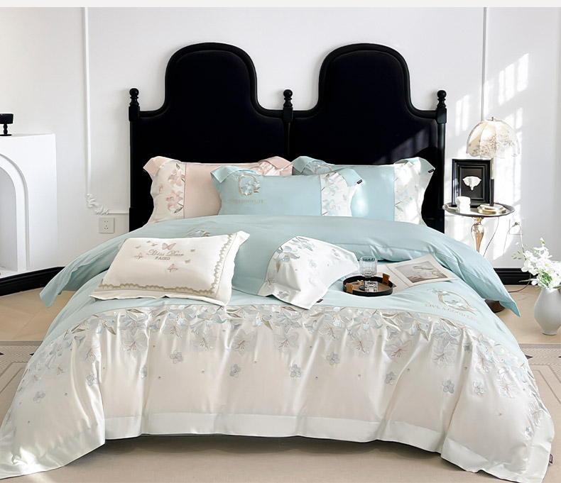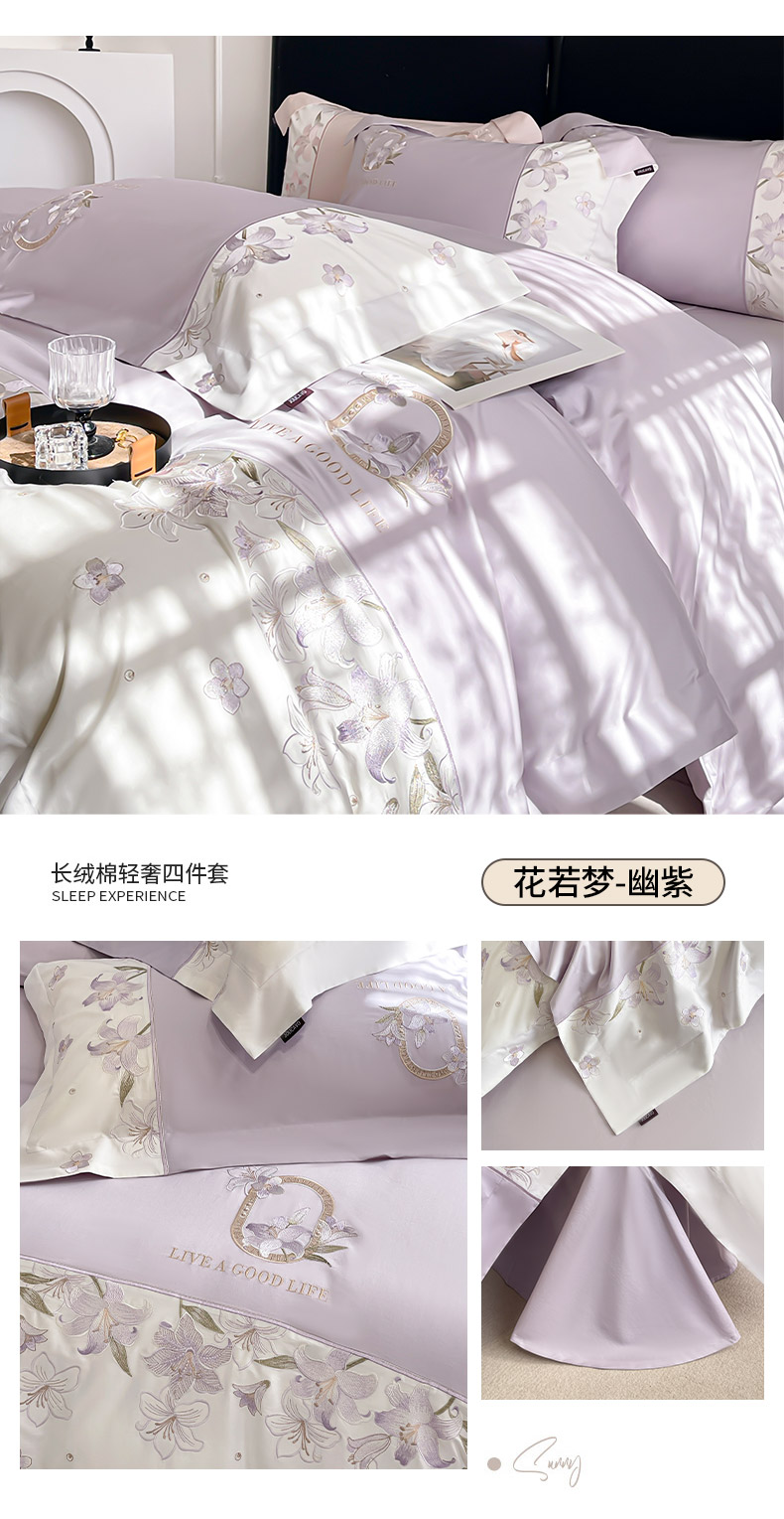 (总) 2025春夏长绒棉四件套纯棉全棉轻奢风床单被套重工刺绣床上用品,芊羽梦-白粉,芊羽梦-茶绿,芊羽梦-黛紫,芊羽梦-慕蓝,芊羽梦-颜粉